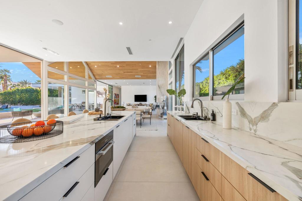 Experience the pinnacle of luxury living in the heart of Makena--an exclusive retreat designed for those who demand excellence. This striking new estate, inspired by legendary architect Joseph Eichler, offers an unrivaled blend of style, innovation, and privacy, perfect for high-profile clients seeking both comfort and grandeur. Imagine entertaining in an 18-foot-ceiling open-concept living space with breathtaking mountain views, featuring a mesmerizing book-matched porcelain fireplace and a striking wood-paneled A-frame roofline that exudes sophistication. The chef's kitchen, with full white oak cabinetry, a 20-foot island, and cutting-edge Miele appliances, is ideal for hosting and creating culinary masterpieces. Seamlessly integrated with cutting-edge Alexa-based smart home technology, control your lighting, AV, and climate with a single touch--perfect for the modern lifestyle of sophistication. The luxurious primary suite features floor-to-ceiling glass overlooking your private pool and spa, complemented by a spa-inspired bathroom with a double walk-in shower, freestanding tub, and dry sauna.Set on over half an acre, your exclusive outdoor oasis includes an octagon-shaped infinity pool, a spa retreat, an outdoor kitchen with a 20-foot island, and multiple fire features--all designed for unforgettable gatherings or private relaxation. This isn't just a home--it's a statement of success, artistry, and impeccable taste. Elevate your lifestyle with this extraordinary desert sanctuary. For discerning individuals who value privacy, style, and innovation--this is your next masterpiece. Schedule your private tour today and step into a world where luxury knows no limits.