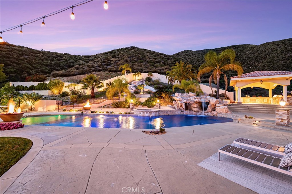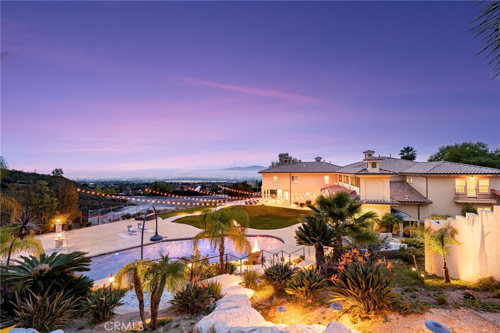 Welcome to an exceptional custom-built estate in the prestigious enclave of San Antonio Heights, where luxury, privacy, and breathtaking views converge in a truly rare offering. Beyond private gates, a grand wrap-around driveway framed by stately pillar archways creates a striking sense of arrival, surrounded by expansive, manicured grounds offering complete seclusion. This impressive three-story residence, including a fully finished basement, is thoughtfully designed and served by an elevator accessing all levels. Inside, a dramatic foyer showcases refined architectural details and crown molding throughout. Every bedroom features its own en suite bathroom and walk-in closet, providing exceptional comfort and privacy. Dual primary suites, each with a fireplace, offer luxurious retreats, while additional fireplaces in the formal living room, family room, and dining room bring the total to five fireplaces throughout the home. The chef’s kitchen is a showpiece, appointed with high-end appliances, generous workspace, a wine refrigerator, and seamless flow to the fully equipped outdoor kitchen, ideal for entertaining. Additional features include a whole-house water softener system and a Generac generator that powers the entire home, ensuring year-round comfort and peace of mind. The finished basement is an entertainer’s paradise with a private theater, full bar, and game room. Upstairs, enjoy a fully equipped fitness room with steam shower, a spacious loft, and an elegant extended hallway enhancing the home’s open flow and sophistication. Security and functionality are exceptional, featuring a full surveillance and alarm system with license plate readers. The property offers a garage accommodating up to nine vehicles, along with additional RV parking on the side yard. The backyard is an entertainer’s dream, showcasing nearly two acres of usable land with a resort-style swimming pool, 62-foot waterslide, jacuzzi, fruit trees, and meticulously groomed landscaping illuminated by over 500 Malibu lights, creating stunning ambiance day and night. Situated on approximately four acres with no possibility of future development behind or alongside, the estate offers permanent privacy and panoramic city views. A truly rare opportunity to experience luxury living in one of San Antonio Heights’ most coveted locations.