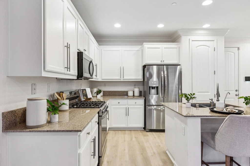 Captivating two story Traditional on oversized lot, backing to open space, with SOLAR! This completely remodeled home is absolutely ready for you to move into: from the moment you step inside, you are greeted by warm LVP flooring, handsome stair rail and a generous, open floor plan. Kitchen is the crown jewel of the home: pristine white cabinetry, granite slab countertops, island with seating, pantry + stainless appliances including a gas stove! THREE separate living spaces here mean entertaining and lounging options to spare. The formal living room, tremendous family room + sprawling loft space ensures that everyone in the family can have their own place to relax. Family room is perfectly laid out: open to the dining area + kitchen, and delights with backyard views and a cozy gas fireplace. Upstairs loft area is the bonus space that everyone is always after: currently used as a dance studio/office- this could be an excellent kids' playroom, dual home office, gaming center or library. The primary suite is bliss: you will dream of retreating here in the evenings....with a view of the backyard, gorgeous crystal light fixture overhead, spa-like ensuite bathroom offering dual sinks, soaking tub & stall shower. Superb backyard w/ patio area, verdant lawn, pergola and hillside views! Views: Ridge