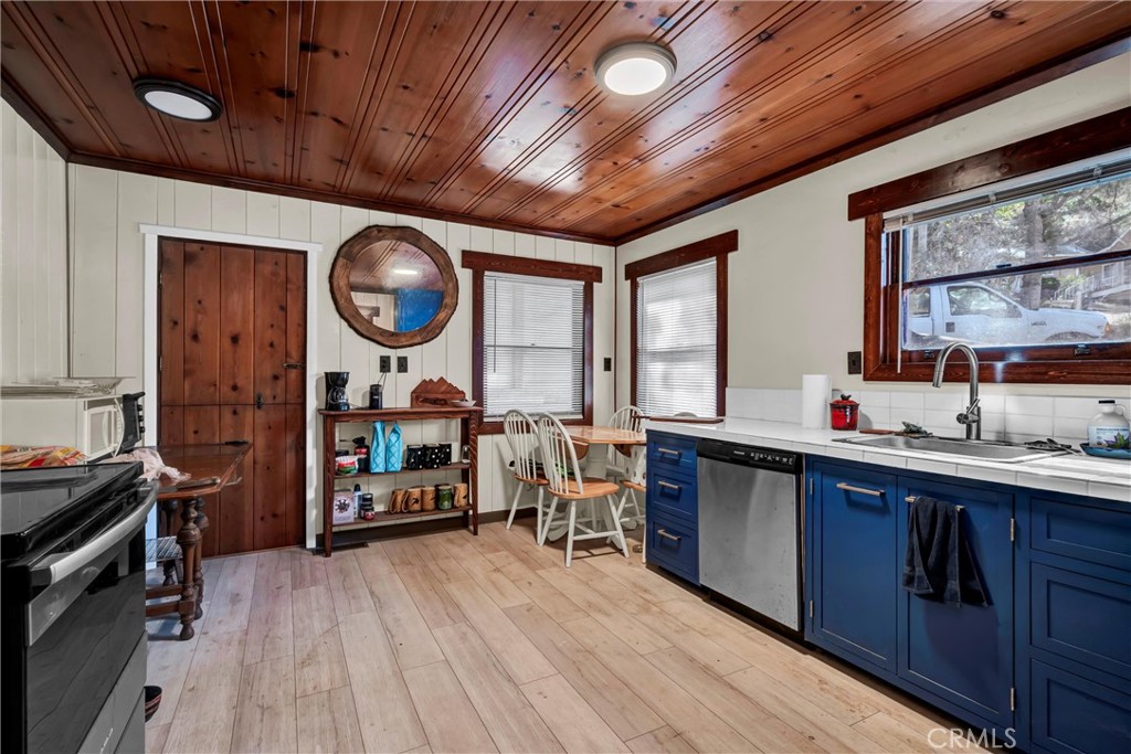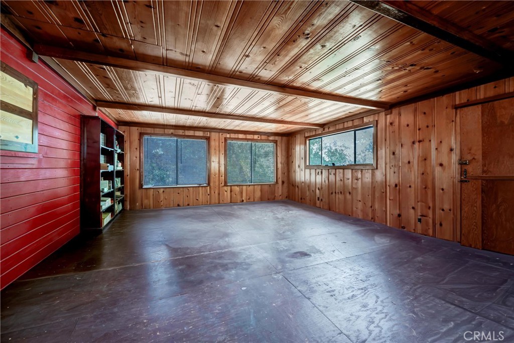 Welcome to this charming 3-bedroom, 1-bath cabin, set on a spacious 13,067 sq. ft. lot. Bursting with character, this home features custom trim and molding throughout, redwood-cased windows, and classic "lawyers wood" walls that add timeless warmth. A striking cobblestone fireplace anchors the living space, while new waterproof laminate flooring provides modern durability with rustic charm. The property includes a detached garage with both a 1-car bay and a dedicated RV spot, plus convenient boat storage tucked beneath the home—perfect for adventure seekers. Adding to its appeal, this home offers year-round neighborhood beach access, giving you a place to enjoy the lake in every season.