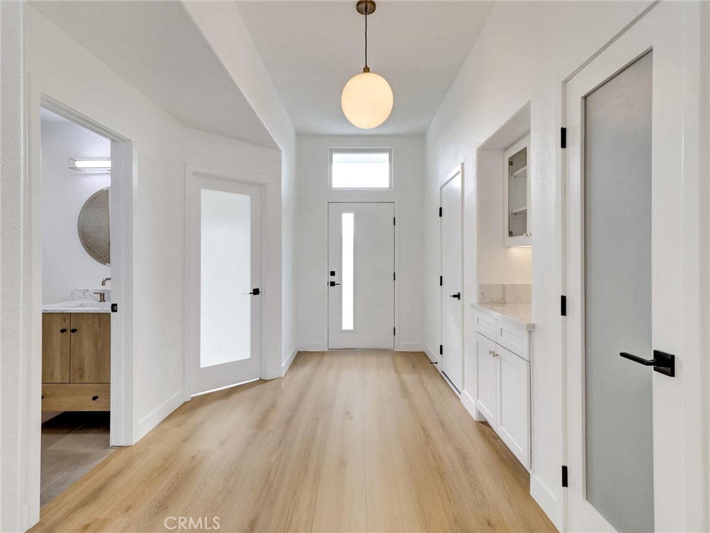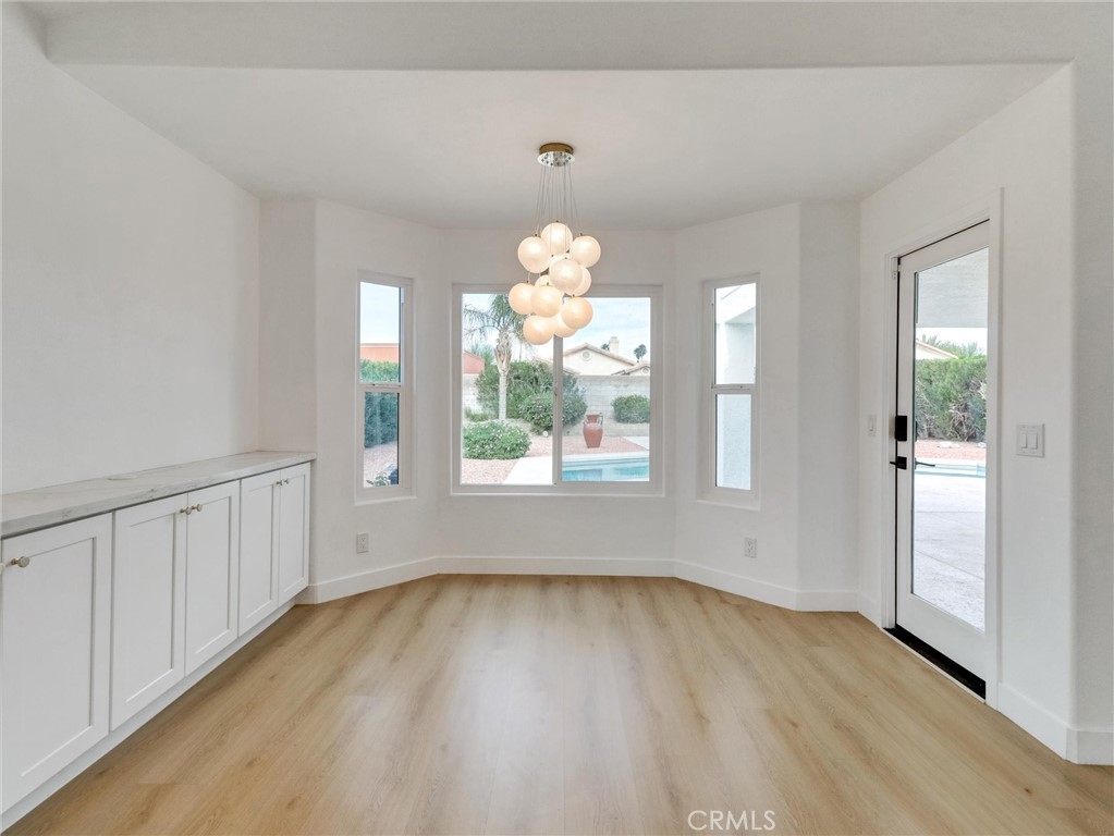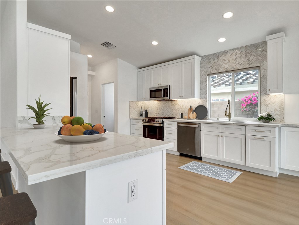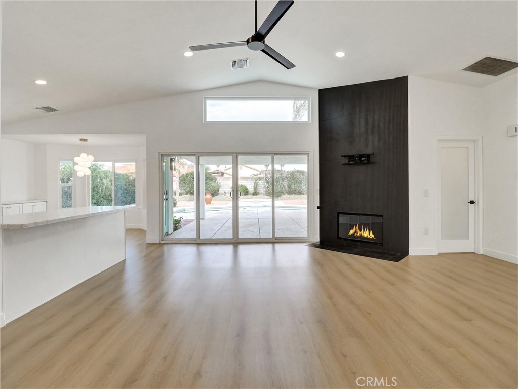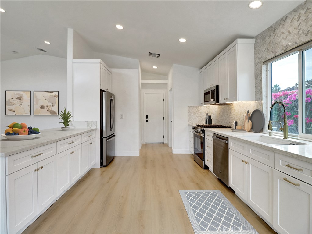 Luxurious 3 bed/2 bath 1623 sq ft designer home on an oversized lot on a quiet cul-de-sac in Cathedral City, just minutes from Palm Springs. Offering privacy, style, and modern comfort, it combines thoughtful design with high-end finishes rarely found at this price. As you enter, you’ll be stunned by the natural light, vaulted ceilings, and an open floor plan anchored by the gas fireplace with floor-to-ceiling tile. The spacious great room flows seamlessly into the kitchen and dining room, creating light and openness throughout. This stunning 2025 full remodel features all-new kitchen and baths, interior and exterior doors, dual-pane windows/sliders, new tile, remodeled pool/spa and refreshed landscaping, making it a true standout. The expansive kitchen offers white shaker cabinets, Calcutta Queen quartz counters, marble tile backsplash, undercabinet lighting, walk-in pantry and stainless GE appliance suite - gas convection & air-fry range, dishwasher, micro and counter-depth refrigerator. Directly across from the pantry is a separate laundry room, adding convenience and functionality. The primary suite includes recess lighting, modern fan, walk-in cedar closet and coffee bar with extra storage. It also provides direct access to the covered patio/pool area creating a seamless indoor-outdoor retreat. The spa-like primary bath has dual-sink vanity with quartz counter, custom shower with bench, Delta black/gold fixtures with rain shower head/wand. The hall bath is equally refined with designer vanity, Kohler toilet, Delta tub with custom-tiled surround. Two additional bedrooms provide ample closets and modern fans. Throughout the home, you’ll find new LVT floors, recess lighting, lami glass doors, new paint and new baseboard/trim. Major upgrades are new tile roof, newer HVAC system, new lighting, modern front door, water softener and dual-pane windows. Step outside to the covered patio overlooking the pool/spa area. The 2025 renovation includes new Pebble Tec, glass tile, Pentair variable pump and 400K heater. The backyard is a private oasis with mountain views and fresh landscaping. Additional highlights include a rare 3-car garage with openers, fully finished with attic storage, new paint and direct access to the home. To top it off, the home comes equipped with NEW, OWNED 18-panel 7.83KW solar system, delivering efficiency and savings. Located in a prime Cat City area, this home is close to Palm Springs vibrant entertainment, shopping and dining options.