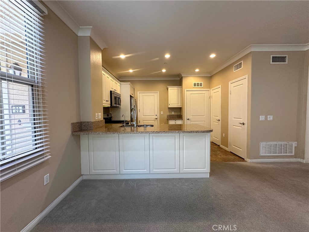 Welcome to highly sought after plan-1(ONE LEVEL) town-home on the ground w/ NO STAIRS in Santa Rosa track of Woodbury East **Property description shows **1 bed, however it's 1 FULL BED AND 1 GOOD SIZED DEN with door** and **1 full bath and 1 powder room.**One of the most well styled unit with an open & spacious floor plan. Park/ greenbelt in a private & quiet location are viewed from well lit great room. This lovely home boasts many things: pleasant natural light with lots of oversized windows brightening the entire house. White window blinds through-out the house. Large chef's kitchen offers granite counter top, gorgeous white cabinets & stainless steel appliances and many more. This home is close to the Great Park and is a walking distance to the Woodbury town shopping center. One minute walk to The Palm Court that accompanies with tennis courts, basketball court, a swimming pool, and a gym for your daily workout. An outstanding Woodbury elementary school. THIS HOME IS A MUST SEE!! Refrigerator and Washer & Dryer are included