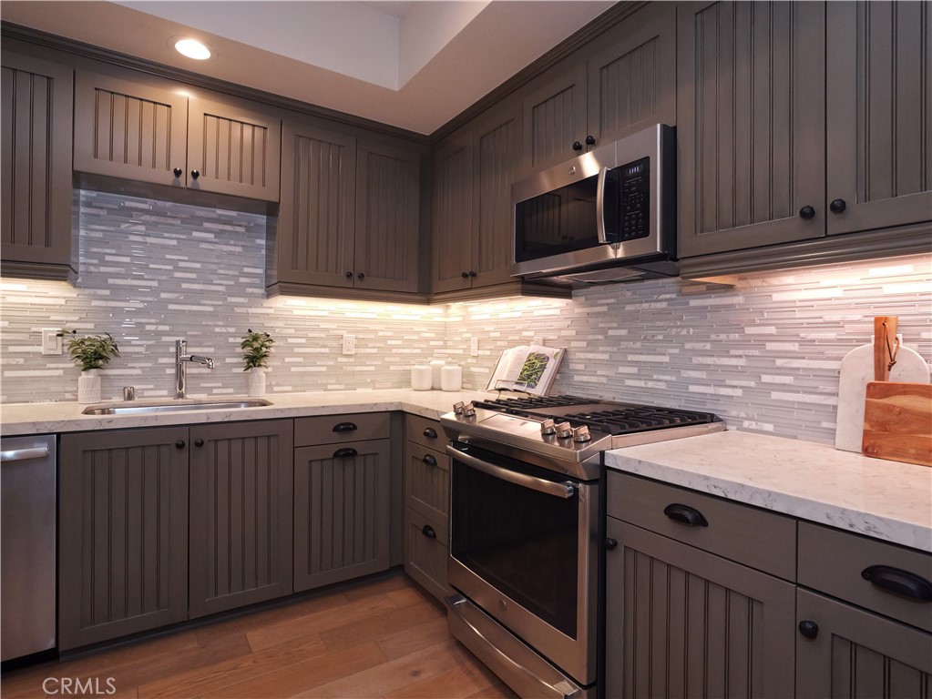 “ La Collina “ is a hidden gem located in the heart of Rolling Hills Estates, offering a resort-style luxury with convenience to “ Everything “. Peninsula Center Library is across the street, Regal Cinema and Promenade Shopping Mall are a half block away, coffee shop next door, Bristol Farms Grocery Store and numerous other shops, restaurants and boutiques just outside your door. Award winning Peninsula High School is a half mile away. You will enjoy a car-free lifestyle in here! The unit itself is located in a prime location on the backside of the complex overlooking lush landscaping and mature trees. It futures one of the largest floor plans available, 2 bedrooms plus a den with large window which is spacious enough to serve as a third bedroom. Wood plank floors run throughout the living areas, hall, bedrooms and walk-in closets. The open-concept kitchen is outfitted with quartz countertops, sleek glass stone mosaic backsplash, and stainless steel Energy star appliances - all perfectly designed for style and functionality. The two master bedrooms are luxurious, each featuring a glass shower enclosure and large walk-in closets. Additional highlights are humidistat-controlled bath ventilation in the primary bathroom, energy - saving LED lighting throughout and Low E dual-glazed windows for enhanced energy efficiency and in-unit laundry. La Collina is a secure, access-controlled community with resort-style amenities, including a fully equipped gym, stylish recreation room and an inviting outdoor courtyard with fireplace, all these facilities are on level 2, right next to this unit. Assigned side by side parking spaces are on level G, space 91 and 92.