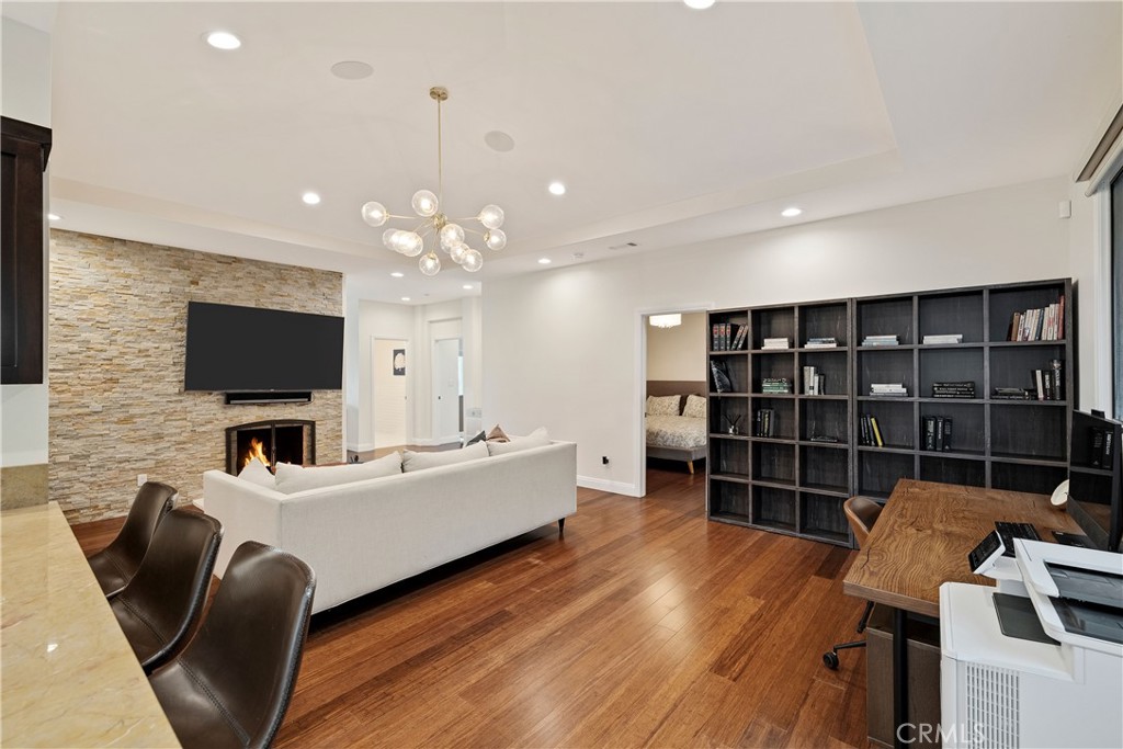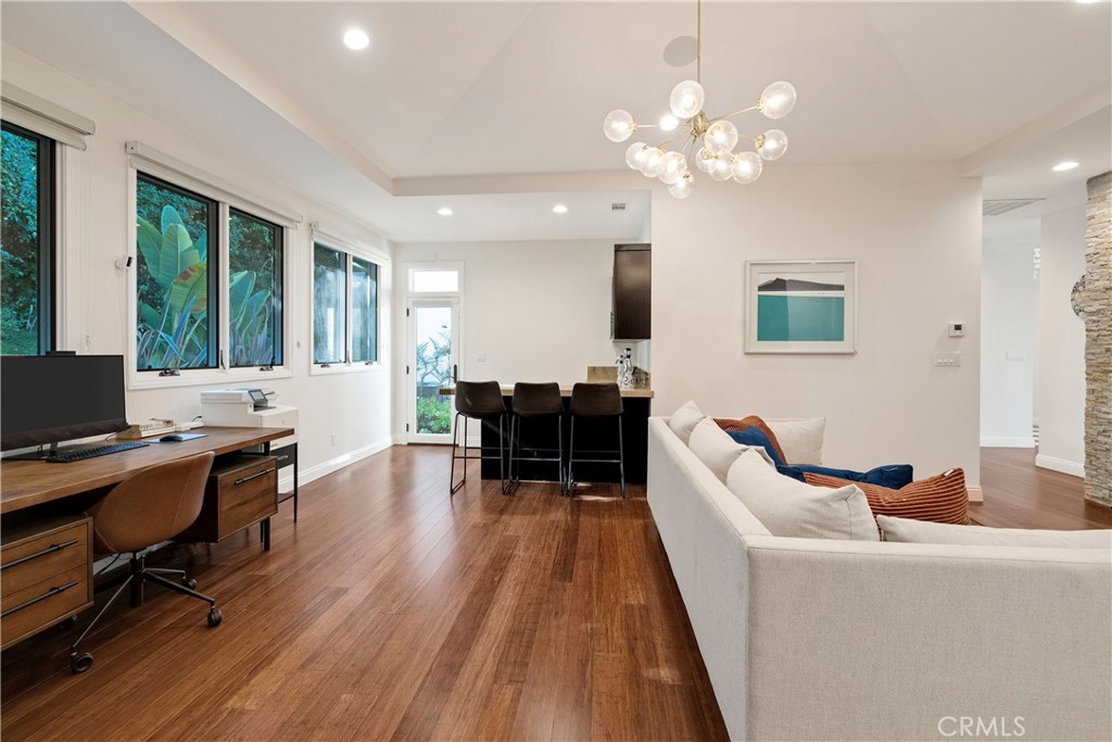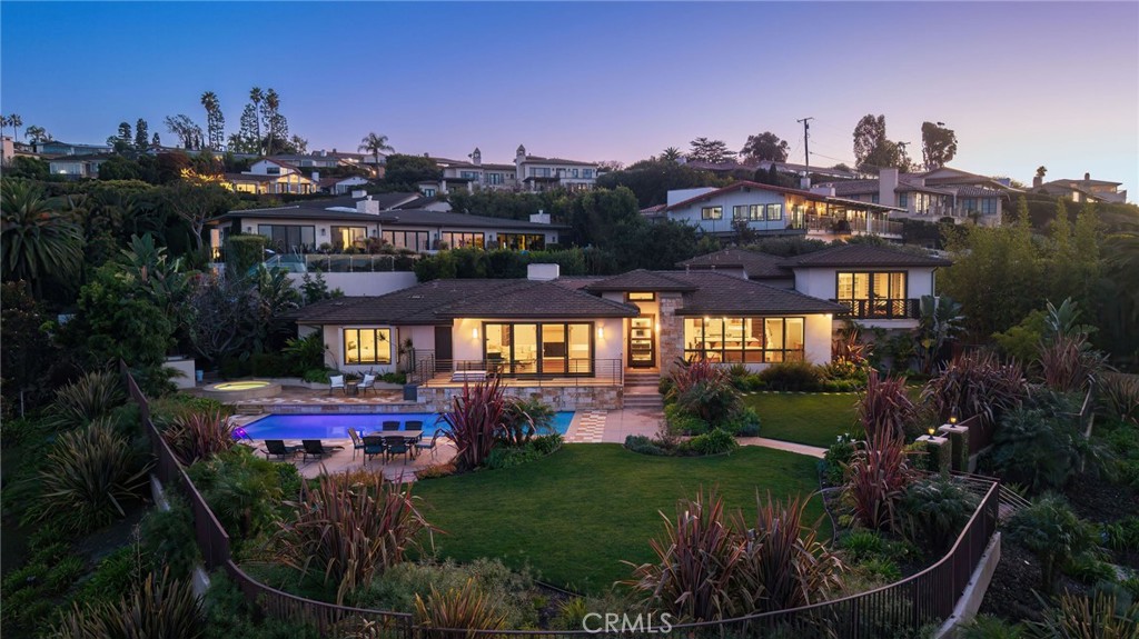 A rare offering in the heart of Upper Malaga Cove, Palos Verdes Estates, this gated coastal estate is set on a generous 16,393 sq ft lot and showcases sweeping views of the Pacific Ocean, coastline, Queen’s Necklace, city lights, and stunning sunsets. Mature landscaping and thoughtfully designed gardens provide a peaceful, private setting in one of the Peninsula’s most sought-after neighborhoods. Built in 2018, the 4000 sq ft residence features five bedrooms and six bathrooms with a refined, contemporary feel. Vaulted ceilings, hardwood flooring, and expansive glass bring in abundant natural light while capturing dramatic views from the main living areas and primary suite. The impressive living room with fireplace opens to the dining area and a chef’s kitchen highlighted by a 10-foot marble island and premium stainless steel appliances. All bedrooms include en-suite baths, with private upstairs and downstairs suites well suited for guests or multi-generational living. The primary suite serves as a tranquil retreat with ocean views, a custom walk-in closet, and a spa-inspired bath with marble finishes and a freestanding soaking tub. The outdoor space is designed for relaxation and entertaining, featuring a resort-style pool and spa positioned to enjoy the views, along with fig and citrus trees and generous garden areas. This exceptional home blends privacy, comfort, and elevated coastal living in one of Southern California’s premier communities.