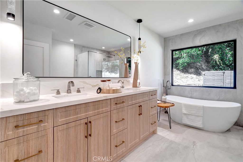 Welcome to a truly exceptional retreat, gracefully tucked away on a quiet cul-de-sac just moments south of iconic Ventura Boulevard. From the moment you arrive, this fully reimagined four-bedroom, four and half -bathroom residence captivates with its understated elegance, impeccable design, and effortless livability. Every inch has been thoughtfully curated—sunlight floods through expansive windows, illuminating the open-concept floor plan where timeless sophistication meets modern comfort. Each bedroom is a private sanctuary, complete with its own en-suite bath, offering a sense of calm, space, and luxury rarely found. Step outside and you’re transported to your own secluded resort. The lush, private backyard invites slow mornings by the sparkling pool, alfresco dinners under the stars, and quiet afternoons in the detached bonus room—perfect for a serene home office, wellness studio, or creative escape. A circular driveway and two-car garage provide ease and elegance for daily living and entertaining, while the location offers the best of both worlds: privacy and proximity to premier shopping, dining, top-rated schools, and commuter routes. This is more than a home—it’s a lifestyle, a feeling, a place to exhale. Welcome to the life you’ve been waiting for.