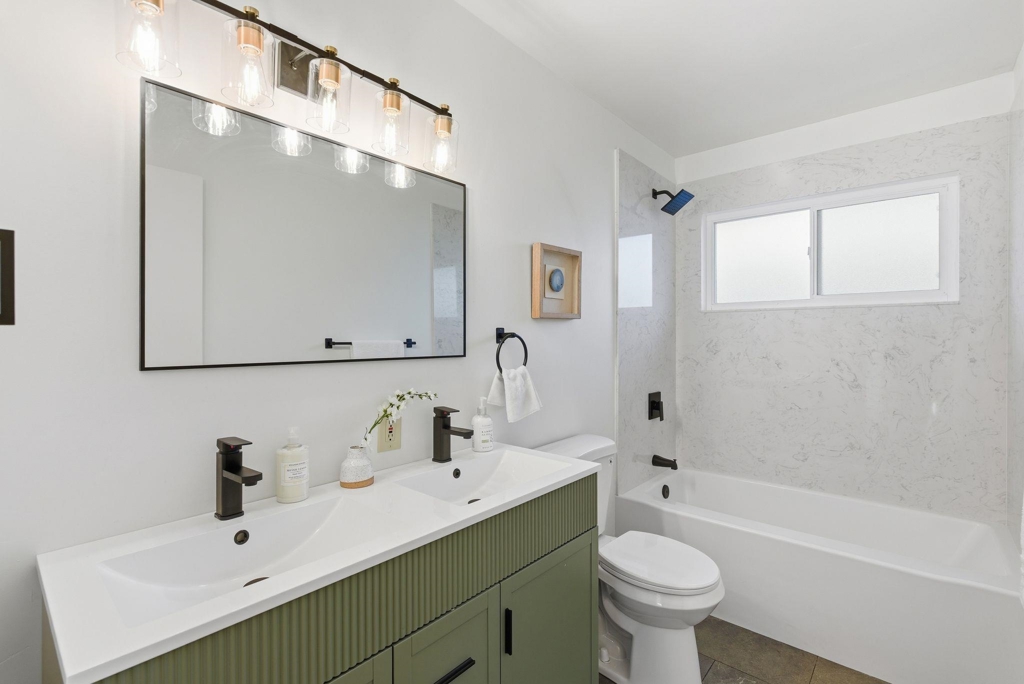 Single level Bay-O-Vista classic with fresh style and easy indoor outdoor flow. This light-filled 3 bedroom, 2.5 bath home welcomes you with an oversized picture window and a stone fireplace in the living room. The adjoining family room with brick fireplace opens to a sunny patio that makes entertaining simple. The newly updated kitchen balances, modern luxury with classic charm. Showcasing design forward color choices on the cabinetry, modern subway tile, quartz countertops, and a cozy breakfast nook. Recent updates include interior and exterior paint, updated lighting, updated kitchen, and bathroom, wide-plank floors that deliver a modern, move-in-ready feel. The hall bath features a new double vanity with matte black fixtures and new flooring. Important system work has been completed, including rear foundation and drainage upgrades for long-term peace of mind, plus a newer roof. The low-maintenance yard offers multiple seating areas, terraced plantings, and hillside outlooks. A two-car garage and a wide driveway provide easy parking. Minutes to Lake Chabot trails, local shops and dining. A bright, comfortable home in a coveted neighborhood with room to personalize over time.