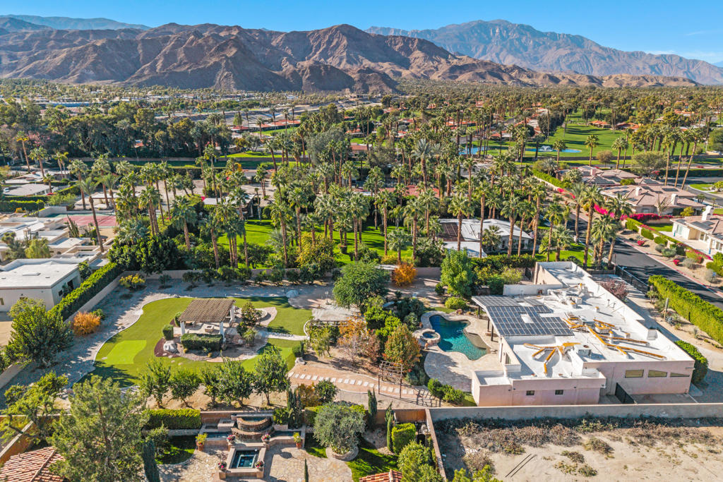 Welcome to 72114 Follansbee Rd! A Classic Mid-Century Private Estate, fully remodeled with luxurious finishes throughout. This gated Desert Oasis is located in the exclusive Clancy Lane area of Rancho Mirage; No HOA! This extraordinary 4600+ sq ft, 4-bedroom, 4-bathroom sits on an oversized nearly 1-acre lot offering a park like environment with lush landscaping and mature fruit trees and would perfect for your own Tennis and/or Pickleball Court. A circular driveway leads to an impressive custom Pivot Front Door which sets the stage for the contemporary and sophisticated design inside. Stepping inside your are greeted by soaring ceilings, an open-concept layout, and abundant natural light enhanced by new modern windows and sliding glass doors. The interior highlights stylish accent walls, large-format porcelain tile flooring, modern all-new recessed LED lighting, and exquisite Restoration Hardware chandeliers. The fully updated multiple HVAC systems, new electrical switches, and chic interior doors and moldings reflect meticulous attention to detail. The gourmet kitchen is a designer's dream, featuring Shinoki wood cabinetry, premium quartz countertops, ZLINE Gold Signature Series appliances, a built-in 60-bottle wine cooler, and elegant fixtures. The expansive primary suite offers direct access to the pool and deck, a spa-like bathroom with a soaking tub, oversized shower, dual vanities, and a spacious walk-in closet. Three additional guest bedrooms are positioned on the opposite wing for maximum privacy. Enjoy resort-style outdoor living with a large sparkling pool and spa, custom water features, an outdoor kitchen & bar with porcelain and marble tile, built-in seating around a cozy firepit, a putting green, and multiple garden vignettes. The long private driveway accommodates RV, golf cart, or guest parking, plus a 2-car garage. Owned full-roof solar panels completes this gorgeous home. This turnkey, move-in ready home is minutes from El Paseo shopping and dining, The River, top golf courses, The McCallum Theatre, and Eisenhower Medical Center. This home is a Must See!!!