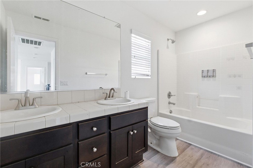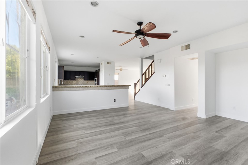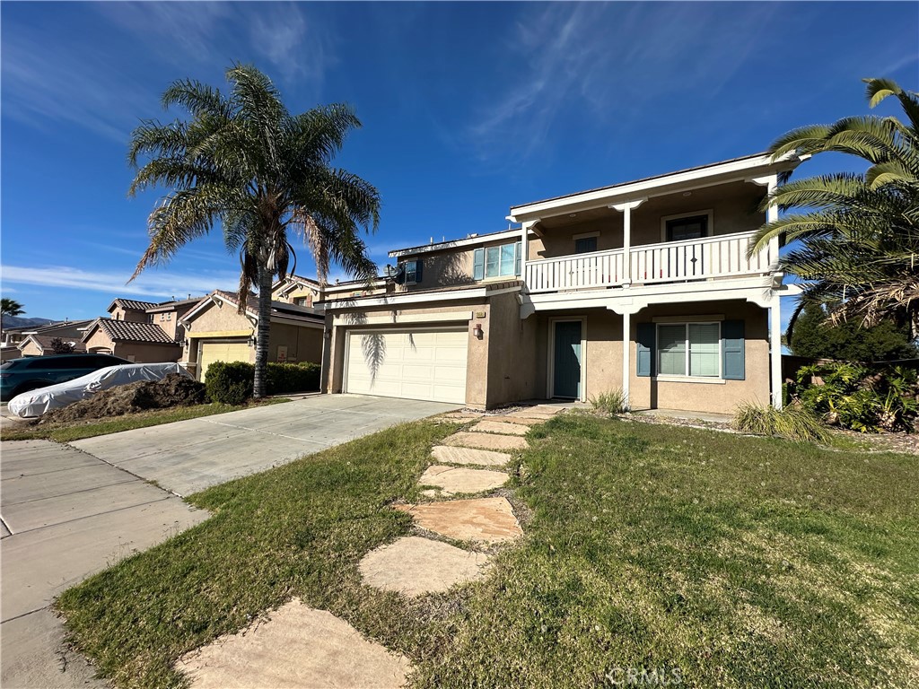 Welcome to this beautifully updated home located in the desirable Madison Fairfield neighborhood of Lake Elsinore, offering a low-maintenance, pool-free lifestyle. This spacious 4-bedroom, 2.5-bath residence features approximately 2,465 sq ft of thoughtfully designed living space built in 2006. The open floor plan is enhanced by brand-new luxury vinyl plank flooring, newly painted interior, and abundant natural light. The gourmet kitchen features granite countertops, oak-tone cabinetry, stainless steel appliances, and a built-in peninsula with bar seating, providing functionality for everyday living and entertaining. The kitchen flows seamlessly into the main living and dining areas. Upstairs includes four well-proportioned bedrooms, a versatile loft, and a convenient upstairs laundry area. The private primary suite offers a relaxing retreat with a soaking tub, dual-sink vanity, and a walk-in closet complete with built-in drawers and shelving! The backyard is designed for easy upkeep, featuring a combination of concrete patio space and grass, offering flexibility for outdoor dining, relaxation, and everyday use. Additional highlights include a 2-car garage. Residents of the Madison Fairfield HOA enjoy access to nearby amenities including parks, a skate park, playgrounds, and more. This is one property you won’t want to miss!