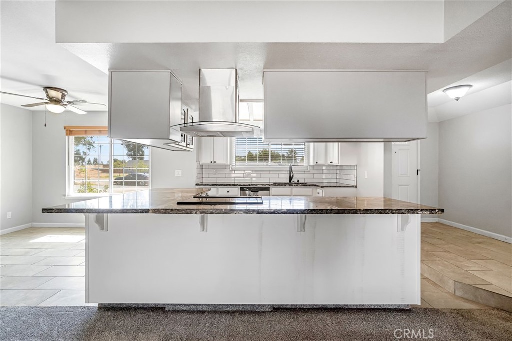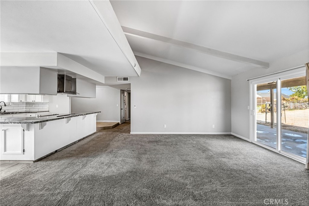 Welcome to 26963 Frisco Way in Madera, a well-maintained ranch-style residence offering a functional layout and thoughtful design. The home features an open floor plan that connects the living, dining, and kitchen areas, supporting efficient use of space. The living room includes vaulted, beamed ceilings and a fireplace, creating an open yet defined area. The kitchen is equipped with stone countertops, shaker-style cabinetry, a tile backsplash, a large island, and a peninsula, along with a stovetop and wall-mounted chimney hood. The primary bedroom includes an ensuite bathroom with a tiled walk-in shower and a walk-in closet. Additional features include an indoor laundry room, owned solar, a covered patio, and a fenced backyard. A storage shed provides additional utility. Situated in an established residential area, this property offers a practical blend of layout, features, and long-term value. Buyer to verify all information to their satisfaction.