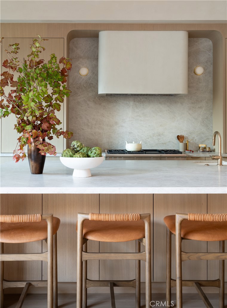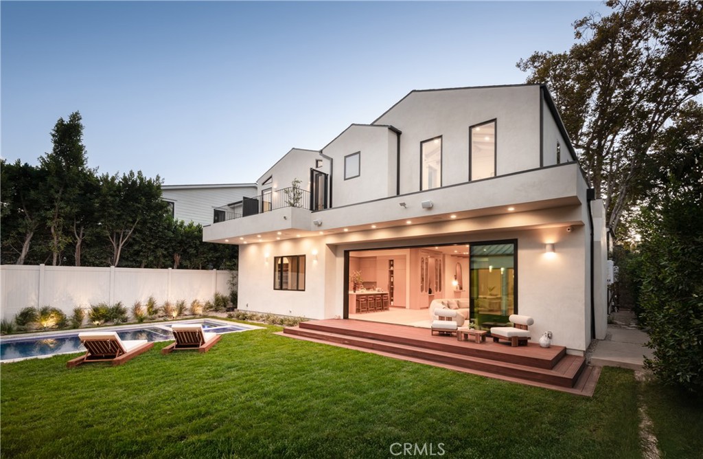 Introducing a newly built Deco Revival inspired modern estate in the heart of Sherman Oaks, ideally located South of the Boulevard and moments from top restaurants, shops, and cafés. Crafted with elevated materials and refined organic texture elements, this residence blends timeless Art Deco elegance with contemporary California living. The exterior features natural stone, brick, and smooth stucco, creating a striking architectural presence. Once inside, custom oak cabinetry, hand-crafted oak ceiling beams, and European natural stone countertops set a sophisticated tone. Upon entering, the main floor unfolds with a seamless flow through spacious, open concept living. Natural light fills the space where expansive living and dining areas flow seamlessly into the gourmet kitchen. The chef’s kitchen is equipped with premium Thermador appliances, European stone countertops, bespoke fixtures, and a large island designed for cooking, gathering, and everyday living. Curved architectural lines and thoughtful lighting, elevate the ambiance with refined soft deco influence. A desirable first-floor ensuite bedroom provides flexibility for guests or a private office, while a spacious theater offers an ultimate cinematic experience. Upstairs, there are four additional ensuite bedrooms, including a luxurious primary suite with vaulted ceilings, custom walk-in closet, private balcony overlooking the outdoors and a spa-inspired bathroom featuring premium finishes and marble countertops. Thoughtfully designed for comfort and privacy, each bedroom enjoys its own beautifully finished ensuite bathroom and custom closets. Make your way outside to the backyard oasis, offering a resort-style pool and spa, outdoor BBQ island and room for alfresco dining and entertaining. The 1 bedroom, 1 bathroom ADU is the perfect place for extended family, friends who are visiting or your home studio.