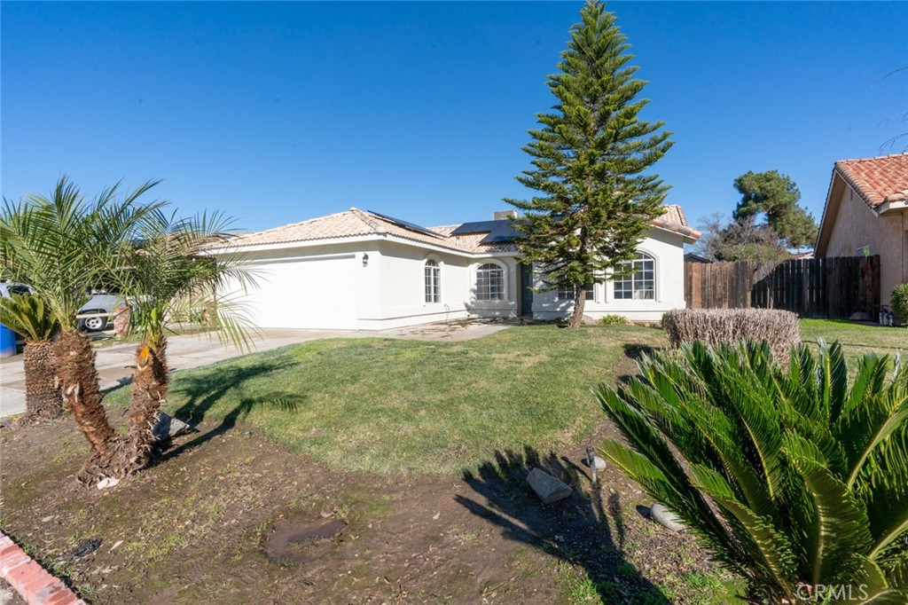 In a desirable location, this freshly painted home boasts updates from LVP floors to granite countertops. The 3-bedroom, 2-bath layout features an open-concept kitchen and family room, perfect for gatherings. A cozy fireplace sets the tone for relaxing evenings, while three comfortable bedrooms provide plenty of space. The versatile formal living room can serve as a den, home office, or bonus room. The private primary suite offers a true retreat with a vanity area, large tub and shower, walk-in closet, and glass slider to the backyard. Outside, enjoy a covered patio, plus central air and heat. New appliances will be provided at COE, and the solar lease is to be assumed.