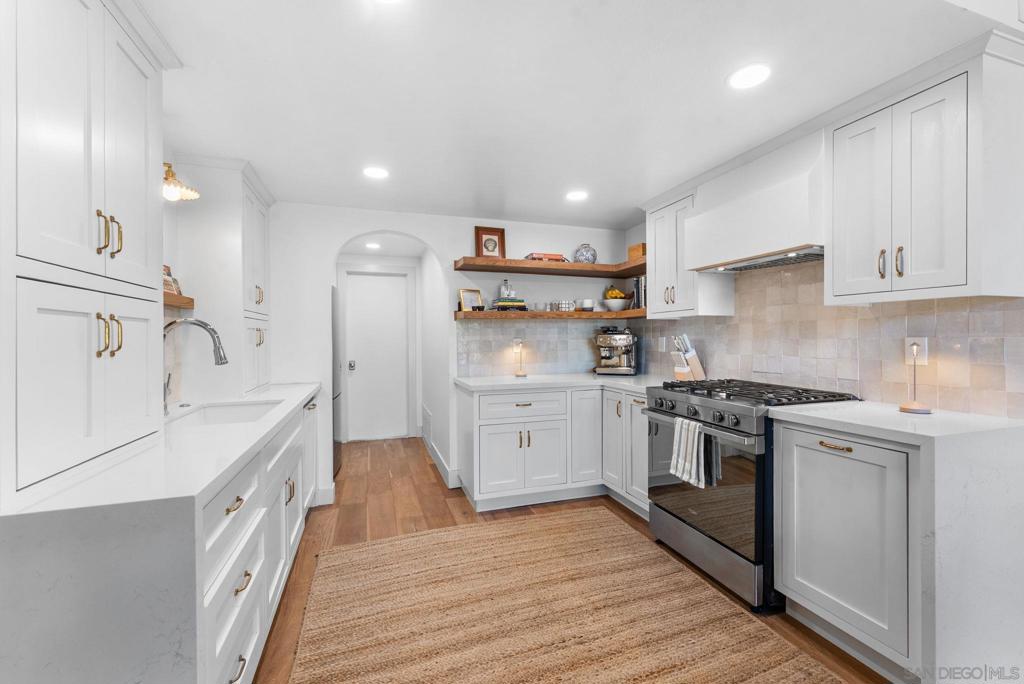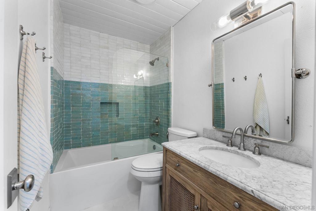 Welcome to 144 Coop Ct., a beautifully reimagined 2-bed, 2.5-bath townhome in one of Leucadia’s most walkable pockets—just minutes to Beacon’s and Grandview beaches, plus the restaurants, cafés, breweries, and shops along the 101. Thoughtfully updated with a clean coastal-modern palette, this home blends everyday comfort with curated designer touches throughout. Inside, French oak engineered hardwood floors, custom wood paneling, and soft linen Roman shades create a relaxed, elevated feel. The renovated kitchen features white quartz countertops, stainless steel appliances, a panel-ready dishwasher, and a custom plaster hood, framed by an arched passthrough that subtly separates the kitchen from the garage entry. The bright living area centers around a restored fireplace and a sculptural linen pendant, perfect for cozy evenings or slow mornings. Upstairs, the primary suite is filled with natural light from a skylight and includes a beautifully updated bath with an oversized walk-in shower, XL niche, and hand-crafted white zellige tile. The guest bath offers two-tone zellige tile, a soaking tub, and an Italian Carrara marble vanity. The guest bedroom features a built-in closet system and a private patio with great sun and ocean breezes. Outside, the private yard is designed for indoor-outdoor living with space for lounging and dining, upgraded drainage, matte terracotta-style porcelain tile, and mature plantings including passion fruit, hydrangeas, and olive trees. Additional highlights include a tankless water heater and newer LG washer/dryer. No HOA.