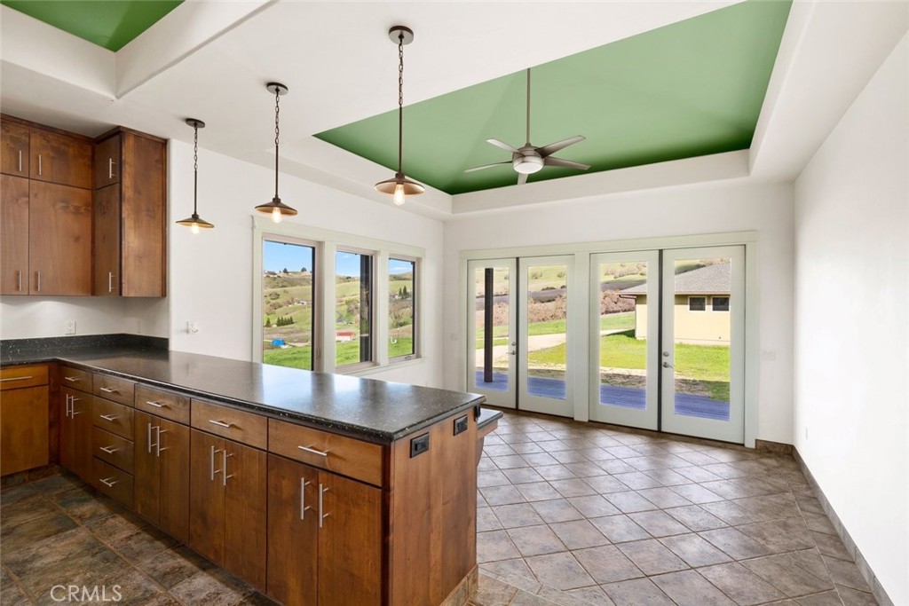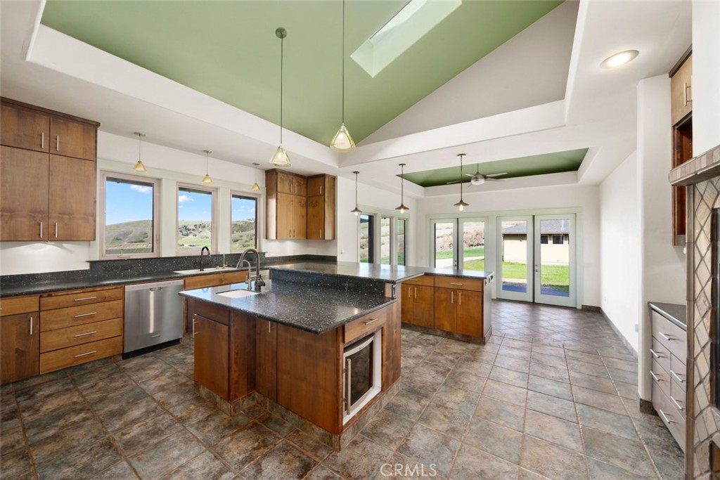 Perched atop 22 acres with sweeping vineyard, mountain, and oak-studded views, this custom-built 4 bedroom, 5 bath, 3,100 sq ft home features a large barn with a private studio, workshop, and horse stalls! Just minutes from Atascadero with easy access to Highways 41 and 101, the home offers three fireplaces, including a wood-burning stove in the chef’s kitchen. The kitchen is equipped with a JennAir refrigerator, double ovens, a six-burner range with hood and warming drawer, walk-in pantry, large island with secondary sink and wine cooler, Dacor dishwasher, and trash compactor. The main living areas feature hardwood floors, a gas fireplace with a marble hearth, and French doors opening to a covered wrap around porch. The first level includes three bedrooms with walk-in closets, full baths, custom built-ins, and outdoor access. Upstairs, the primary suite offers two balconies, a large custom closet, and a bath with a dual-sided fireplace and walk-in shower. The home also includes a basement ideal for a wine cellar or bonus room, a detached 3-car garage with a half bath and a custom fabricated outdoor pet enclosure. The property is horse and livestock-ready with its 3000 sq ft barn with 14 foot custom fabricated doors, five stalls, tack room, shop, laundry area, and a private studio upstairs, perfect for guests, a caretaker, or rental income. This is a truly one-of-a-kind property you won’t want to miss! Information not verified.