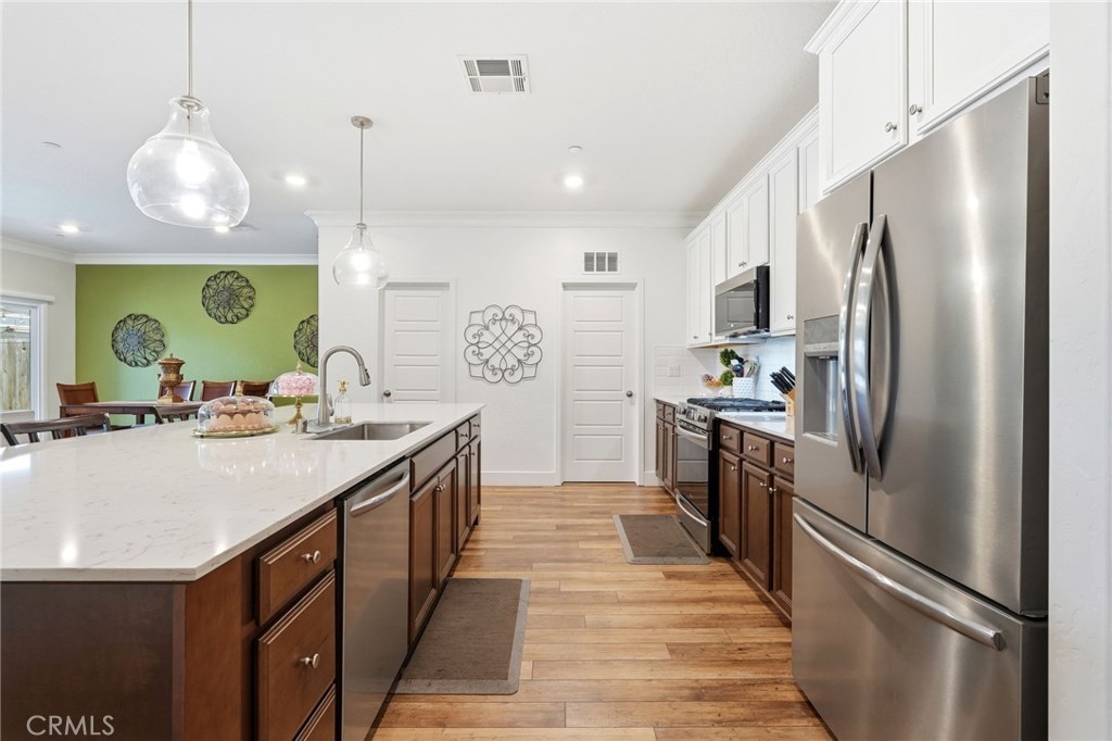Welcome to 133 E Tyler Ave, where charming curb appeal and thoughtful design immediately set the tone. From the beautifully manicured artificial turf in the front yard to the inviting entryway, this home makes a stunning first impression. Pride of ownership shines throughout, offering a warm and welcoming feel the moment you arrive. Inside, you’ll find an open and airy layout filled with natural light. The spacious great room connects effortlessly to the dining area and gorgeous kitchen, complete with a large island, quartz countertops, stainless steel appliances, and abundant cabinetry—perfect for both daily living and entertaining. The primary suite serves as a peaceful retreat with a well-appointed ensuite, while additional bedrooms provide comfort and versatility. Step outside to your own backyard oasis designed for relaxation and enjoyment. Enjoy the sparkling pool and spa, soothing water features, low-maintenance artificial turf, and a beautifully designed outdoor space ideal for gatherings or peaceful evenings at home. Adding to the appeal, this home also features solar for energy efficiency and is conveniently located near shopping, dining, schools, and amenities. This is the one you’ve been waiting for!