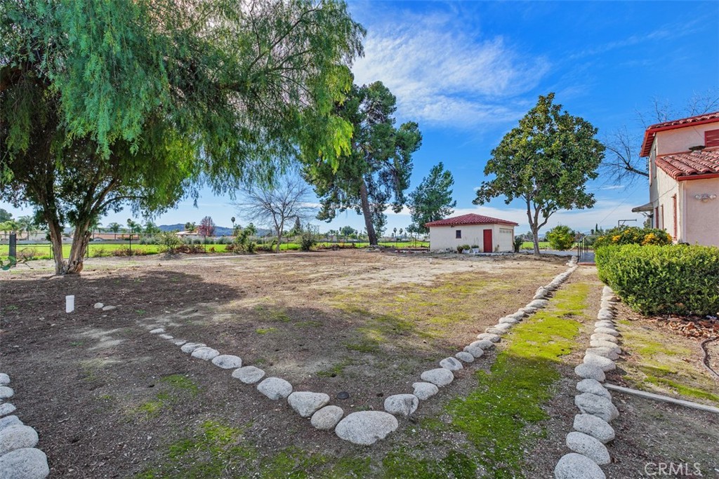 Experience the enduring appeal of this charming 1936 Mediterranean-style estate at 41699 Acacia Avenue in Hemet, CA 92544, set on approximately 8.91 acres that include the main parcel and an adjacent vacant land parcel. This vintage home features spacious bedrooms—with two upstairs and a third plus primary downstairs—a sunny retro kitchen with built-in breakfast nook, vintage tiling, and glass cabinet doors, a formal living room boasting a wood-paneled ceiling and grand fireplace, retro bathrooms, and a massive finished basement with knotty pine ceilings ideal for storage, recreation, family gatherings, or guest quarters. Outside, enjoy mature trees, multiple brick patios, full wrought-iron fencing with gated access, a detached two-car garage offering potential for ADU conversion, and extensive concrete parking for RVs or toys. Situated in an Opportunity Zone with medium-density characteristics, buyers should confirm subdivision possibilities with the County of Riverside, potentially allowing division into 9,000 sq ft lots for enhanced development potential.