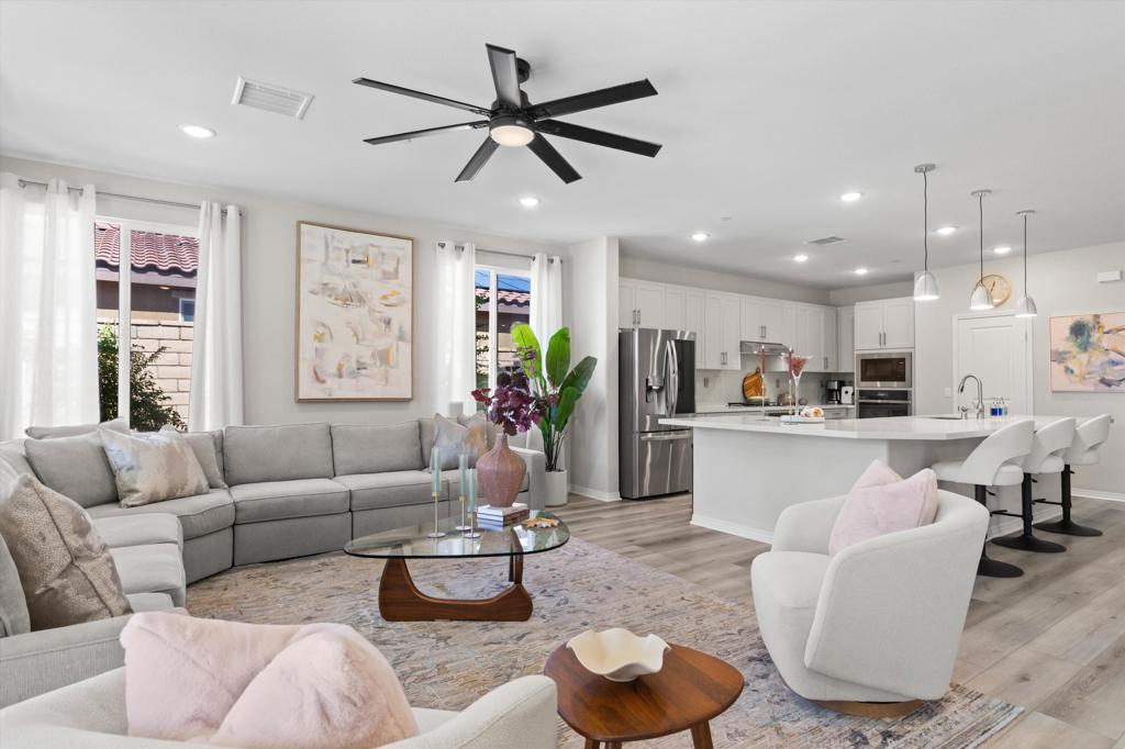 **Price Just Reduced! This One's Priced to Sell.**This is your moment. A stunning 2023 built home with all the right upgrades already done for you and now offered at an exceptional value that won't last long.At 2,166 square feet, this thoughtfully designed residence offers 2 spacious bedrooms, 2.5 bathrooms, and a versatile bonus room that adapts to your lifestyle, whether that's a home office, creative studio, or private guest suite. Luxury vinyl plank flooring brings warmth and durability to the main living areas, while plush carpeting ensures the bedrooms feel like a retreat.The heart of the home is a kitchen designed to impress and entertain. Stunning quartz countertops, a sleek modern backsplash, and a generous island create a space that works beautifully for your morning routine and your weekend gatherings alike. Thoughtfully curated lighting sets the perfect ambiance in every room, and a cozy fireplace adds a striking, inviting focal point to your living space.Outside, your private backyard is a curated escape: low-maintenance artificial turf, elegant hardscape pavers, and a charming gazebo perfect for al fresco dining. Mature citrus trees add a touch of nature and fresh-picked fruit, all framed by gorgeous mountain views.Beyond your doorstep, a world-class 22,000 sq ft clubhouse awaits, complete with a fitness center, indoor lap pool, outdoor pool, tennis and pickleball courts, basketball, a yoga studio, salon, library, ballroom, and an on-site bistro. An active social calendar keeps the community vibrant, and championship golf is just minutes away.*Refined design. Premium finishes. Resort-style living and an unbeatable price. Don't wait.*