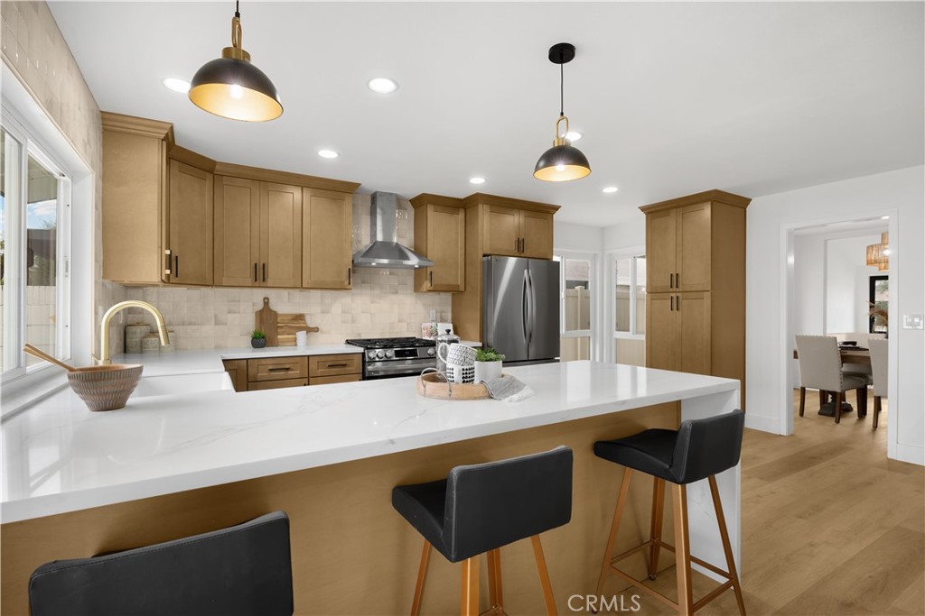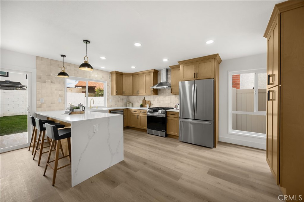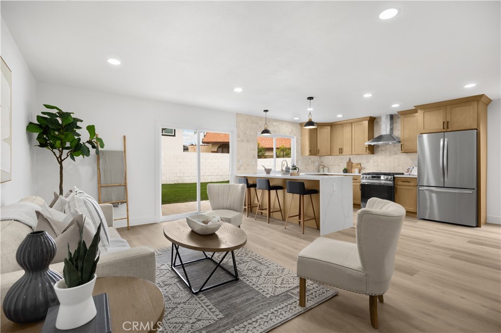 Embrace refined coastal living in this exquisitely renovated single-level home, set within the highly sought-after College Park East neighborhood of Seal Beach and the award-winning Los Alamitos School District. Spanning over 2,000 square feet, this beautifully reimagined residence offers four bedrooms and two fully remodeled bathrooms, blending elevated design with everyday functionality. A warm boho-coastal aesthetic welcomes you inside, where white-oak inspired luxury vinyl plank flooring flows throughout, anchoring the home with timeless sophistication. The living space is positioned around an elegant fireplace with sitting area, accented by a striking fluted tile backdrop that adds texture and architectural interest. The heart of the home is a stunning chef’s kitchen, designed to impress and perform, featuring wood cabinetry, stainless steel appliances, quartz countertops and a waterfall-edged peninsula, designer tile backsplash, and a farmhouse sink. Sliding glass doors extend the living experience outdoors, opening to a wood-look tiled patio and a lush, grassy backyard ideal for entertaining, relaxing, or play. Thoughtful upgrades continue throughout the home, including new recessed lighting, new designer light fixtures, and ceiling fans in all four bedrooms. The primary suite is a true retreat, complete with a walk-in closet and a ensuite bathroom featuring an oak toned vanity and a frameless glass-enclosed shower with modern, high-end finishes. The hall bathroom is equally refined, offering dual sinks, a wood vanity, and a fully tiled bath enclosure. Additional highlights include dual-pane windows throughout, upgraded electrical with a 200-amp panel, a solar panel system for significantly reduced energy costs, upgraded plumbing, a brand-new HVAC system with smart thermostat, new water heater, a new garage door and motor, a new sprinkler system, and fresh sod. Perfectly positioned adjacent to Heather Park, with tennis courts and playgrounds, College Park East also features two additional neighborhood parks with basketball courts and play areas. Enjoy close proximity to the Seal Beach Tennis & Pickleball Center, Old Ranch Country Club, Old Town Seal Beach dining, major freeway access via the 405, 605, and 22, and the iconic Seal Beach Pier and shoreline. This is the turnkey home buyers wait for. Single-level, beautifully remodeled, energy-efficient, and located in one of Seal Beach’s most desirable neighborhoods. Just in time for spring.