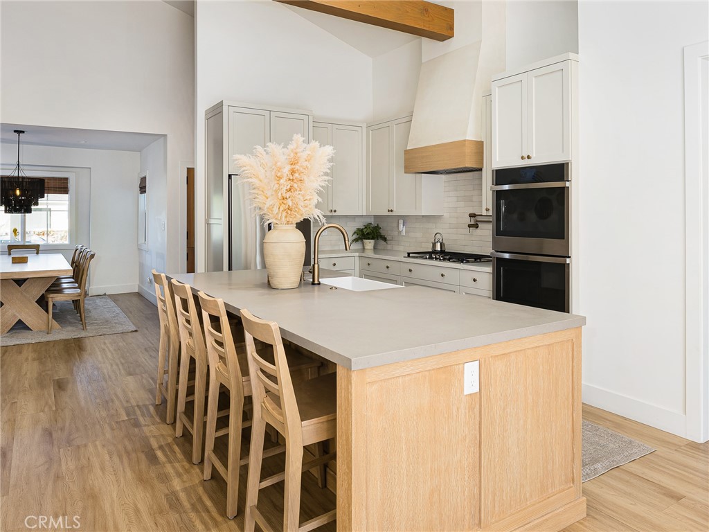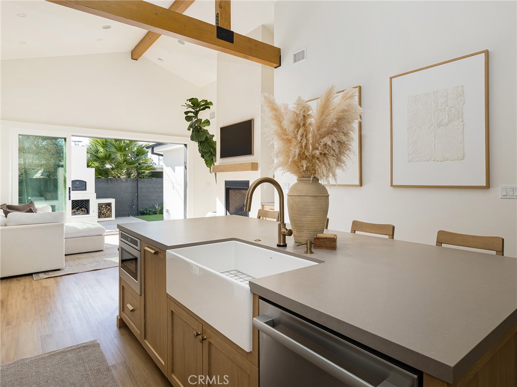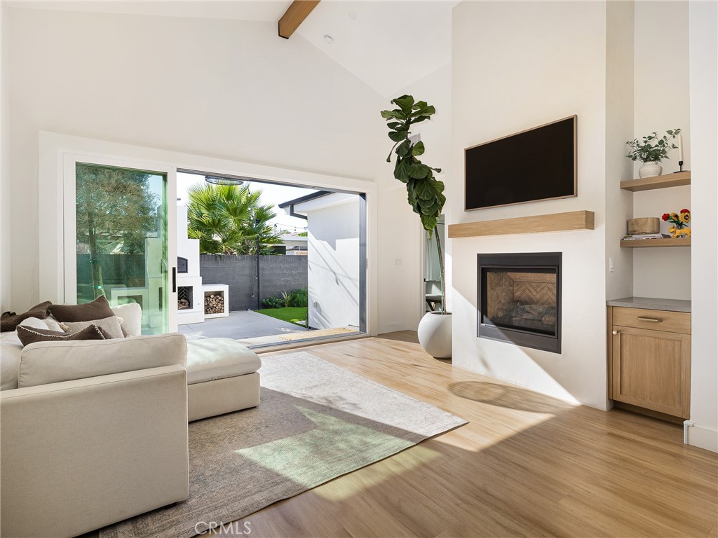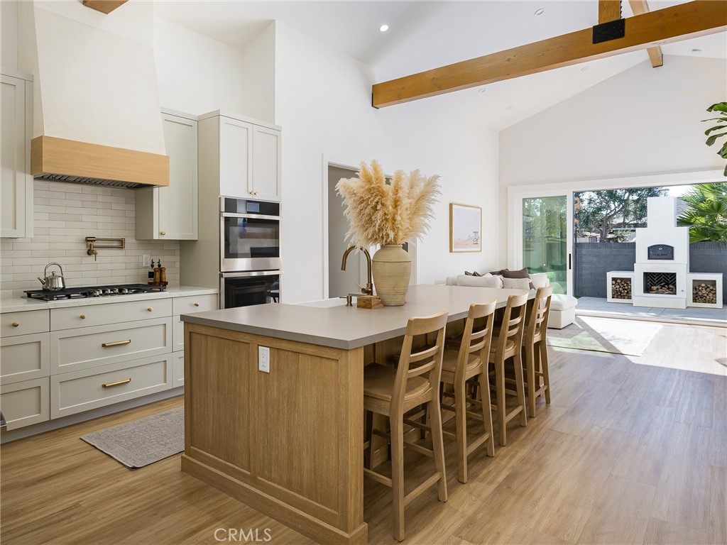 Stunning 2022-Remodeled Home! This turnkey house boasts 4 bedrooms, 3 bathrooms, and nearly 2,000 square feet of living space that is thoughtfully designed throughout! As you enter, you are greeted by a bright and inviting open-concept layout with vaulted ceilings, recessed lighting, and beautiful floors. The kitchen features custom cabinetry and counters, a large island, quartz countertops, two skylights, double ovens, a gas range, and a pot filler for added convenience. A coffee nook and wine fridge sits off the kitchen and in between the kitchen and the huge walk-in pantry and laundry room. Additionally, the east wing of the home has a full, updated bathroom and separate bedroom with built-in closet features. The chef-inspired kitchen also flows seamlessly into the living room, which boasts vaulted ceilings, a gas fireplace and a 9 foot tall sliding glass door to the backyard, seamlessly encouraging indoor-outdoor living. The private backyard features a gas fireplace that doubles as a wood-fired pizza oven, along with a low-maintenance turf lawn! The front yard has a one-car driveway and garage, which provides direct access to the home. The primary suite features vaulted ceilings, a walk-in closet with built-in features, storage access to the spacious attic, a skylight, and an en-suite bathroom that boasts a large shower with dual showerheads and a built-in seat and custom-built, dual vanities. Two additional large bedrooms have built-in features in the closet and one of them offers a Murphy bed for added flexibility. The third bathroom conveniently sits in between them. Additional highlights include: new PEX plumbing, double-paned windows, new electrical (220V electric capacity in the garage for EV owners), high-efficiency AC, a home speaker system, and a tankless water heater for energy efficiency throughout!
