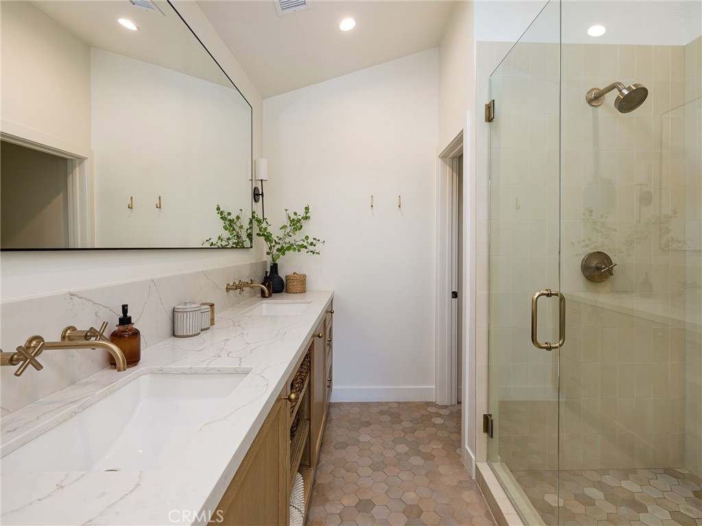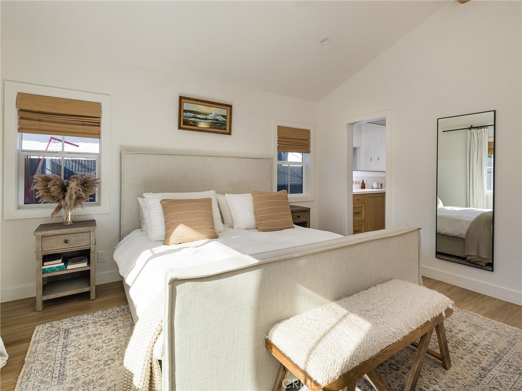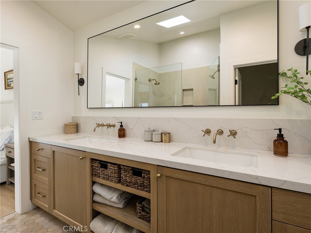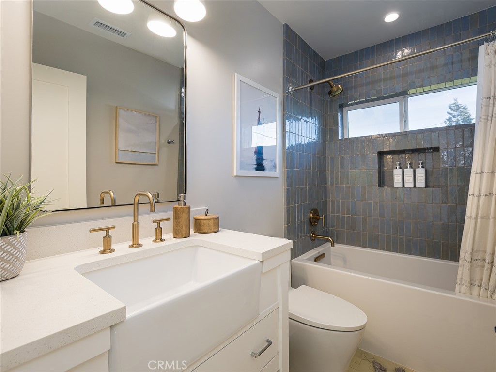 Stunning 2022-Remodeled Home! This turnkey house boasts 4 bedrooms, 3 bathrooms, and nearly 2,000 square feet of living space that is thoughtfully designed throughout! As you enter, you are greeted by a bright and inviting open-concept layout with vaulted ceilings, recessed lighting, and beautiful floors. The kitchen features custom cabinetry and counters, a large island, quartz countertops, two skylights, double ovens, a gas range, and a pot filler for added convenience. A coffee nook and wine fridge sits off the kitchen and in between the kitchen and the huge walk-in pantry and laundry room. Additionally, the east wing of the home has a full, updated bathroom and separate bedroom with built-in closet features. The chef-inspired kitchen also flows seamlessly into the living room, which boasts vaulted ceilings, a gas fireplace and a 9 foot tall sliding glass door to the backyard, seamlessly encouraging indoor-outdoor living. The private backyard features a gas fireplace that doubles as a wood-fired pizza oven, along with a low-maintenance turf lawn! The front yard has a one-car driveway and garage, which provides direct access to the home. The primary suite features vaulted ceilings, a walk-in closet with built-in features, storage access to the spacious attic, a skylight, and an en-suite bathroom that boasts a large shower with dual showerheads and a built-in seat and custom-built, dual vanities. Two additional large bedrooms have built-in features in the closet and one of them offers a Murphy bed for added flexibility. The third bathroom conveniently sits in between them. Additional highlights include: new PEX plumbing, double-paned windows, new electrical (220V electric capacity in the garage for EV owners), high-efficiency AC, a home speaker system, and a tankless water heater for energy efficiency throughout!