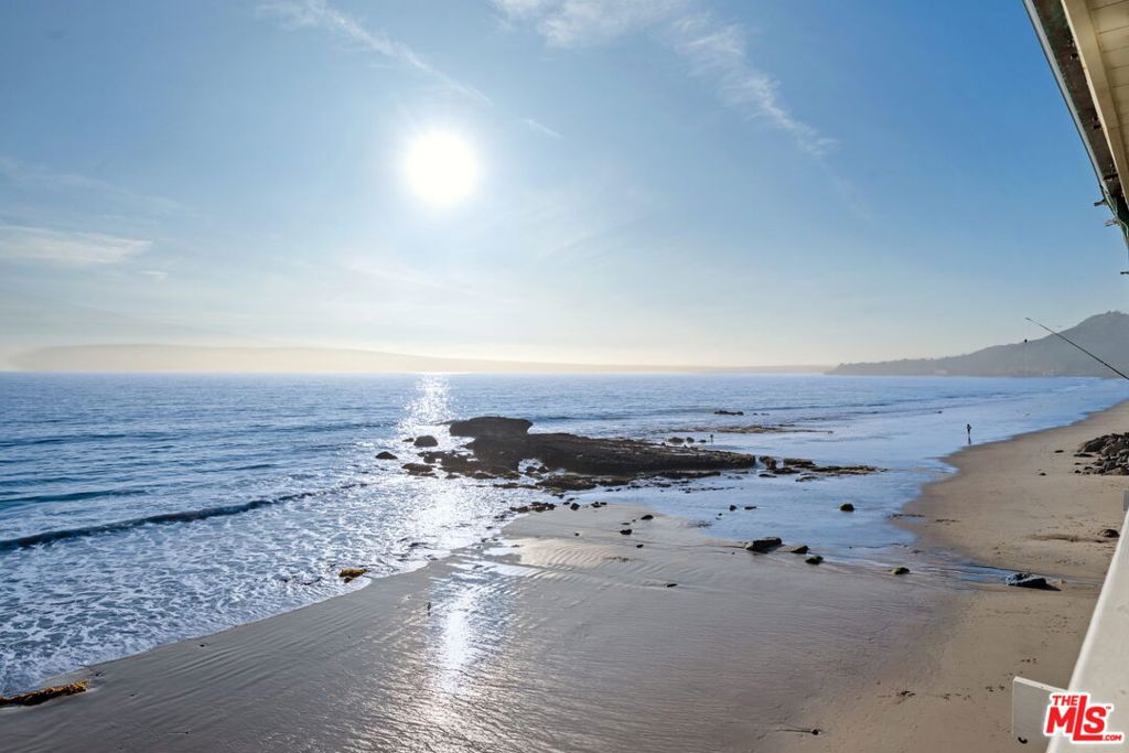 New Co-Ownership Opportunity: Wake to the sound of waves in this stunning two-bedroom, two-bath beachfront residence, ideally tucked away on coveted and private Malibu Road. A rare and highly sought-after offering, this beautifully appointed condo captures sweeping panoramic ocean views from its expansive beachfront deck. The light-filled living room invites relaxation with a cozy fireplace and seamless indoor-outdoor flow to the oceanfront terrace. The open-concept kitchen is both elegant and functional, featuring top-of-the-line stainless steel appliances, crisp white cabinetry, and striking ocean-spray blue granite countertops. This single-level, first-floor end unit offers exceptional privacy with a secure private entrance, along with the convenience of an attached one-car garage and in-unit washer and dryer. Just steps from your door, private beach access leads directly to the sand, perfect for beach walks and enjoying Malibu's legendary sunsets. Combining a prime beachfront location, tranquility, and refined coastal living, this exceptional property offers the ultimate opportunity to experience the magic of the Malibu lifestyle.