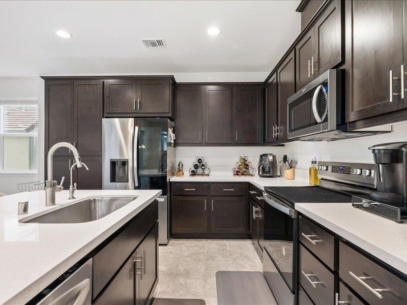 Welcome Home to a beautifully refined, upper-level sanctuary in the coveted River Islands community—where comfort meets quiet elegance. From the moment you enter through the main-level foyer or the attached 2-car garage, a sense of calm sets the tone. Ascend to the second floor and discover a sophisticated open-concept living space bathed in natural light. The gourmet kitchen invites connection and creativity, featuring a generous island with a built-in sink—perfect for intimate conversations over coffee or effortless entertaining. All rooms are thoughtfully placed on one serene level, including a dreamy primary suite designed as your personal retreat. Modern luxuries elevate everyday living: a Tesla EV charger, whole-home water softener, and meticulously maintained community amenities including a sparkling pool, spa, and BBQ area. Surrounded by lakes, parks, and peaceful walking paths, this home offers not just a place to live, but a lifestyle to fall in love with.