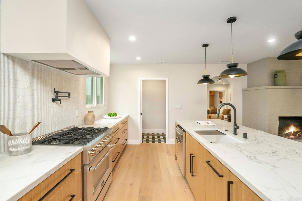 Impeccably remodeled coastal El Segundo home offering a refined blend of luxurious design and everyday functionality just minutes from the beach and downtown El Segundo. A welcoming entry introduces warm finishes and clean architectural lines, leading into a bright living room with wide-plank wood floors, recessed lighting, and an open layout ideal for both entertaining and relaxation. The kitchen anchors the home with custom white oak cabinetry, sleek countertops, new appliances, a six-burner range with pot filler, and an oversized island designed for gathering. It flows seamlessly into the family room, where direct backyard access creates effortless indoor–outdoor living. The primary suite occupies its own private level, creating a true retreat complete with a spa-inspired bath featuring a freestanding soaking tub, oversized walk-in shower, and striking modern finishes. Additional bedrooms include a flexible space well-suited for a home office or creative studio, along with two additional bedrooms, all filled with natural light. A stylish hall bath and a dedicated laundry room with custom cabinetry and sink add everyday convenience. Outdoors, the generous backyard features a new Trex deck ideal for entertaining, a spacious lawn with room to relax, garden, or expand, and mature trees. Perfectly positioned near top-tier schools, downtown El Segundo, and an array of parks and recreational amenities, this home delivers an exceptional coastal lifestyle. Nearby dining, local breweries, pickleball and tennis courts, and community green spaces create everyday ease, with the beach just minutes away.