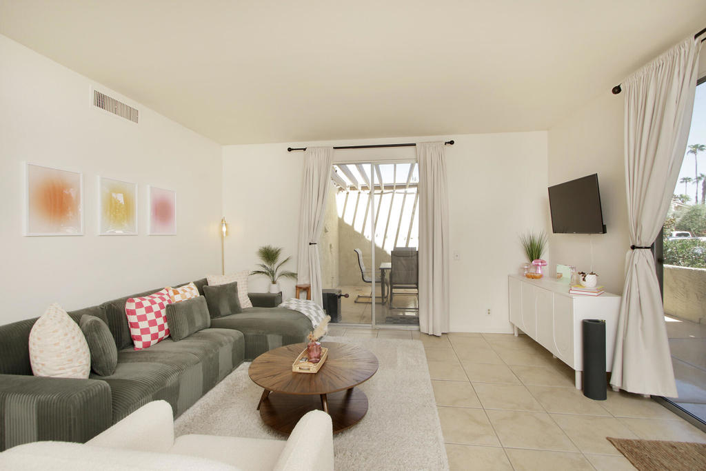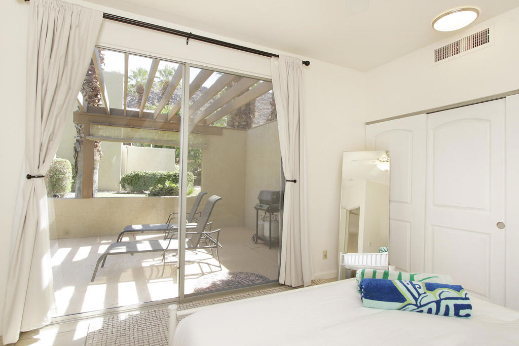 FEE land (you own it!) The development allows for short-term rentals of 7 days or longer! 2 large bedrooms, en suite plus a 3rd full bathroom that allows for 6 guests comfortably. Large, open floorplan with the opportunity to lock off one bedroom and bathroom into a separate, revenue-building suite with a separate entrance, its own temperature control and water heater. In fact, this unit will lock off 3 different ways allowing it to pay you, and have it available for private use! Full flexible, revenue building resort living for you, your guests or family in a beautiful Indian Wells gated location. South-side of Highway 111 with ample storage, clean lines, and on IID Electric (lower bills). Light floods through the large floor-to-ceiling glass sliding windows that spill into an oversized, wraparound porch accessed from the great room, and primary bedroom. True outdoor living adjacent to 3 exquisitely maintained pools and grounds, all with the exclusive address, benefits and amenities of Indian Wells. Walk to the Indian Wells Tennis Garden to take in world-class tournament play or grab the shuttle to the Coachella Music & Arts Festival. Small-town living with big-time amenities! Close to El Paseo shopping district, Old Town La Quinta, Seasonal Polo, Horse jumping at Desert International Horse Park, Thermal Club for racing, Modernism Week, Desert X art and more! Central valley convenience with gated, Indian Wells security!