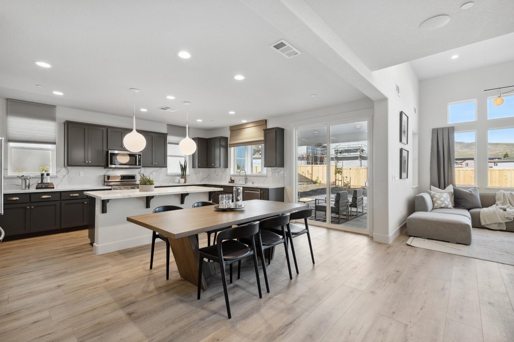 This stunning 5-bedroom, 4-bathroom home offering an impressive 2,818 square feet of beautifully designed living space.Upon entry,you'll immediately find the main floor bedroom complete with a walk-in closet, full bath with a walk-in shower.As you continue through the main level, you’ll find theformal dining room and staircase to the second floor. Just beyond is the cozy family room, complete with a gas fireplace and direct access to the covered backyard patio, perfect for relaxing or entertaining outdoors.On the opposite side of the home, the gourmet kitchen awaits, offering a center island, generous pantry, single basin sink, and a full stainless steel appliance package.Upstairs, a spacious loft provides the perfect space for a game room, or home office. The second and third bedrooms share a full bathroom with dual vanity, tub, and shower. The fourth bedroom features a full en-suite bathroom, and the laundry room is conveniently located upstairs with a nearby linen closet.At the end of the hall, retreat to your own private oasis in the primary suite, which boasts a luxurious spa-inspired bathroom with soaking tub, solid surface walk-in shower, dual vanity, and oversized walk-in closet. This home includes multi-zone HVAC, solar energy system, prewired electric charging stations