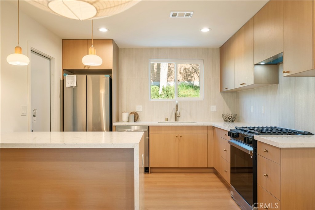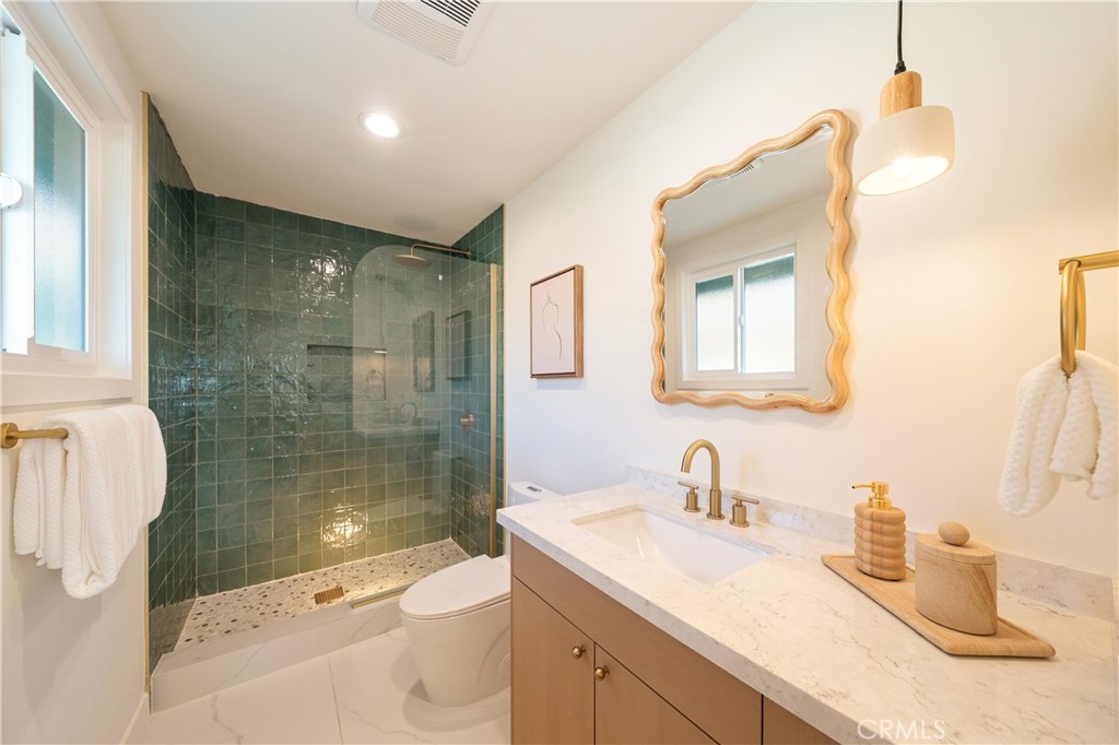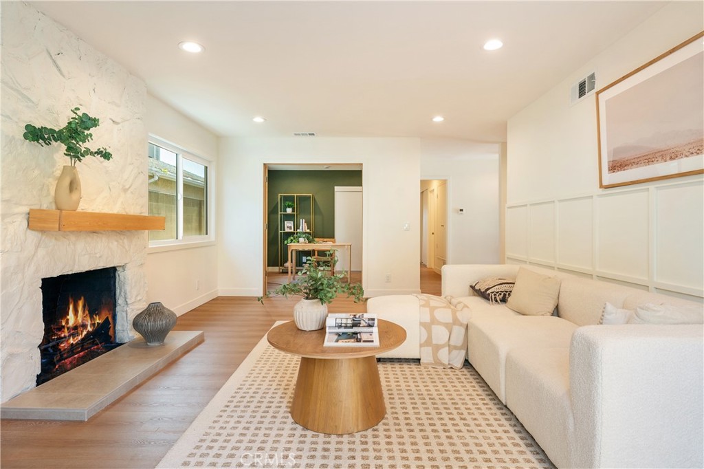 Welcome to this beautifully renovated mid-century home located in the highly desirable city of Costa Mesa. This home features 4 bedrooms and 2 bathrooms, offering a spacious layout with a large living room and a cozy fireplace. The stunning kitchen showcases European-style cabinetry and brand-new appliances, perfect for modern living and entertaining. The property is equipped with paid-off solar, a Tesla Powerwall, and a 200-amp electrical panel, providing energy efficiency and peace of mind. All four bedrooms are conveniently located along the hallway, thoughtfully separated from the main living areas for added privacy. The bathrooms feature beautiful designer tilework and stylish vanities. Ideally located with easy freeway access and just minutes from shopping, dining, South Coast Plaza, and the OC Fairgrounds, this home offers both comfort and convenience.
