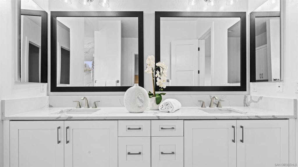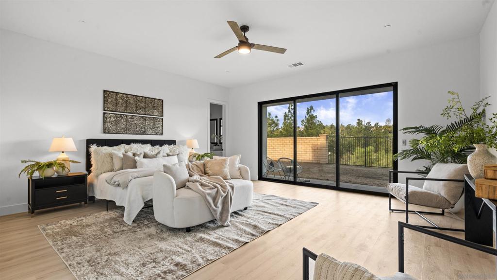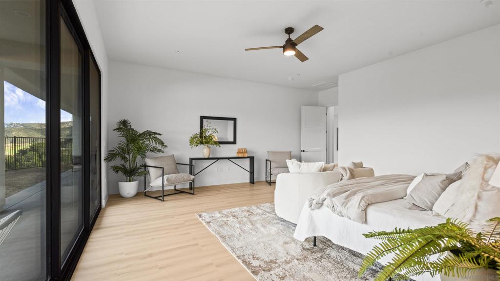 A true stunner, this brand-new, never-lived-in modern home sits on its own private, oversized lot with no neighboring homes, offering exceptional privacy, breathtaking canyon views, and potential to build an ADU. Located in North Poway, near The Heritage and the entrance of Maderas Country Club, the home also provides direct access to nearby hiking trails and serene natural surroundings. This thoughtfully designed residence features 4 bedrooms, 4.5 bathrooms, a dedicated office, and a bonus room, with each bedroom offering its own ensuite bathroom and walk-in closet. Upon entry, you are welcomed into a stunning grand room with soaring 15-foot ceilings and expansive windows that frame the canyon views and flood the home with natural light. The gourmet kitchen is equipped with Thermador appliances, including a 48-inch gas range, hood, wine chiller, microwave, and refrigerator—ideal for both everyday living and entertaining. Recent upgrades include new sleek modern garage doors, new flooring throughout, owned solar, dual-zone HVAC, and an EV charger for modern convenience. As an added value, HOA dues are paid through June 2027. This is a rare opportunity to own a private, luxury new-construction home with views, premium upgrades, and an exceptional location in one of Poway’s most desirable communities.