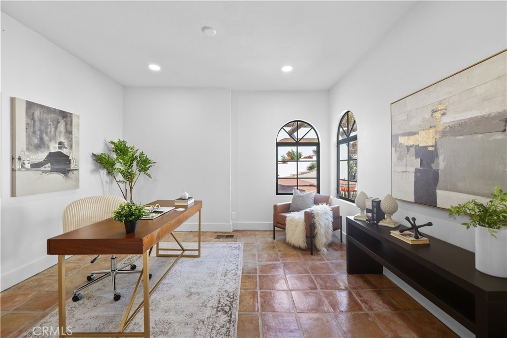 Welcome to your timeless Spanish-style estate in the highly sought-after community of La Habra Heights. Nestled on a private street, this stunning residence blends classic Spanish charm with modern luxury. Featuring 5 bedrooms, 5 bathrooms, and set on an expansive 41,662 sqft lot, the property offers exceptional privacy and space. A newly paved driveway leads to the home, where a beautiful fountain anchors the spacious front patio—ideal for outdoor gatherings and entertaining. Enter through the striking full-glass entry door into a bright, open interior filled with natural light. Gleaming hardwood floors flow throughout the lower level, complemented by authentic Spanish-style tiles on the main floor. The kitchen awaits, showcasing brand-new oak soft-close cabinetry, porcelain countertops, Café appliances, a Bosch dishwasher, and sophisticated Kohler fixtures illuminated by modern LED lighting. A private office provides a quiet workspace, while a formal dining room with its own fireplace creates a warm, inviting atmosphere. The outdoor deck, adorned with traditional Spanish tile and graceful arches, offers breathtaking panoramic views. Downstairs, the serene master suite features expansive windows framing the surrounding landscape. The luxurious primary bath includes dual walk-in showers, a soaking tub, two large walk-in closets, and a sleek dual vanity—all finished with premium Kohler fixtures. Additional spacious bedrooms, each with generous closet space and newly installed wooden doors, complete the home’s private living quarters. Two laundry rooms—one conveniently located upstairs on the main floor and another downstairs—add to the home’s functionality and comfort. Fruit trees are thoughtfully planted throughout the property, enhancing its natural beauty and charm. Recent upgrades provide both comfort and peace of mind, including a reinforced foundation with a 10-year warranty, new air conditioning ducts, and updated copper plumbing in excellent condition. This exceptional property combines timeless architecture, modern amenities, and room for personal touches—ready to become your dream home. House is best priced per sq ft in the area