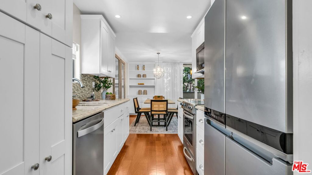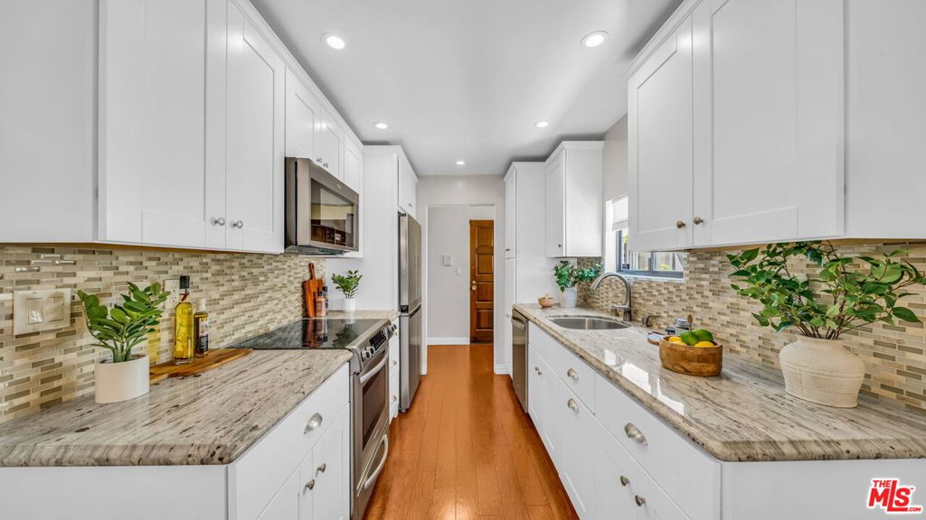 Front-facing two-bedroom and two-bath condominium with a large wrap-around balcony, three walls of windows, and almost no common walls. Extensively renovated with an eye for classic details such as stone counters, wood floors, designer fixtures, and tile, throughout the appealing modern floor plan. Everyday living is made easy with gated security, two parking spaces & extra storage. Well-maintained and friendly building. Homeowner's dues include earthquake insurance. Premier location close to the Promenade, Montana Avenue, Palisades Park, and the Ocean in the coveted Santa Monica School District. High quality & excellent value.