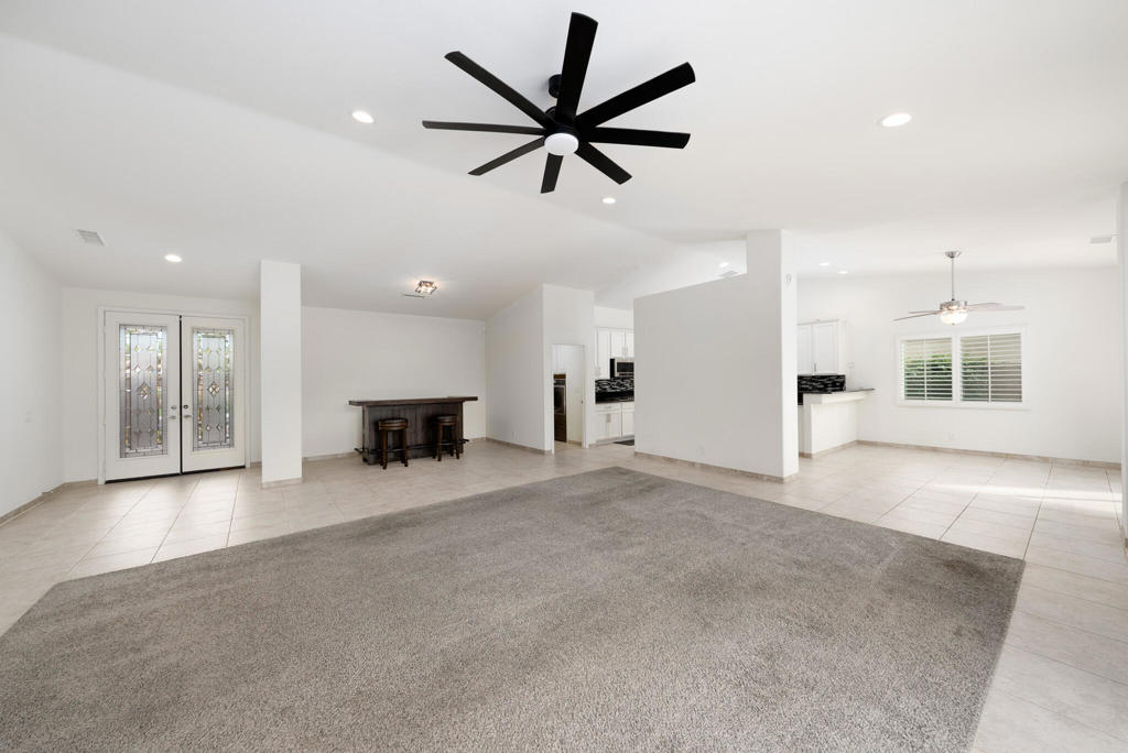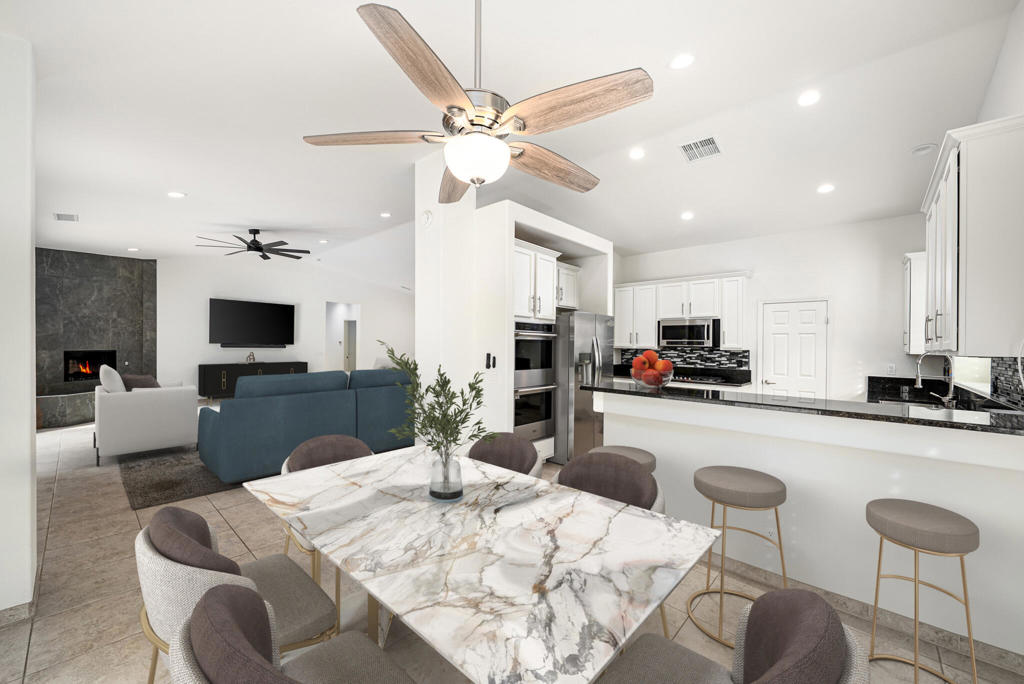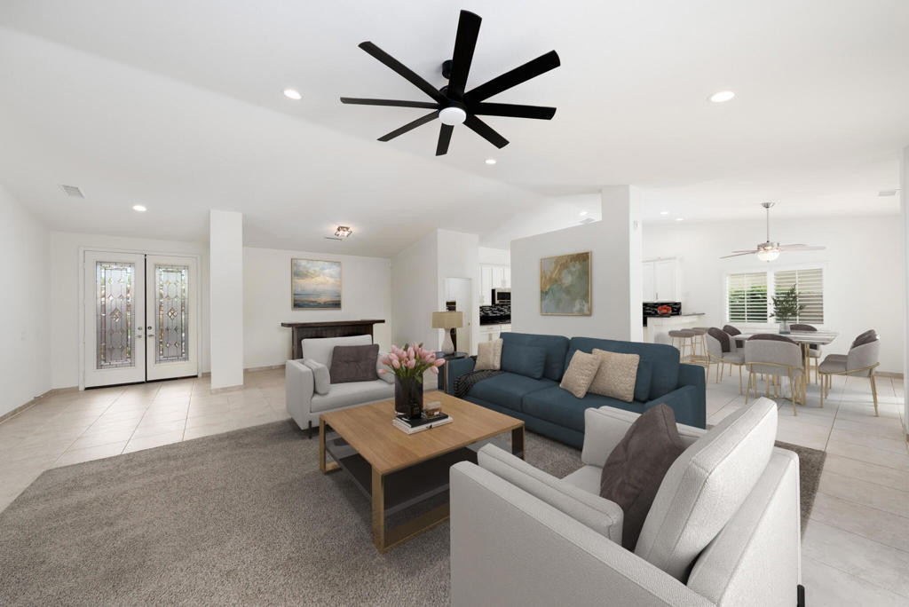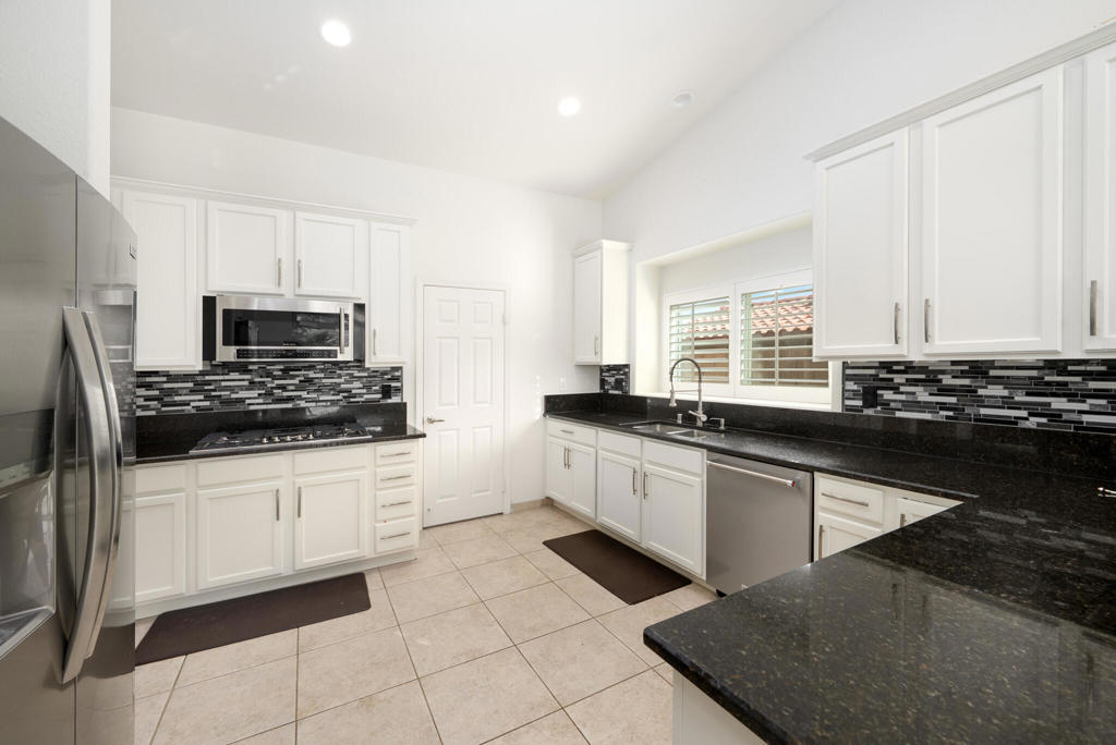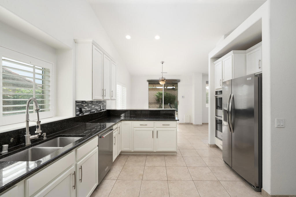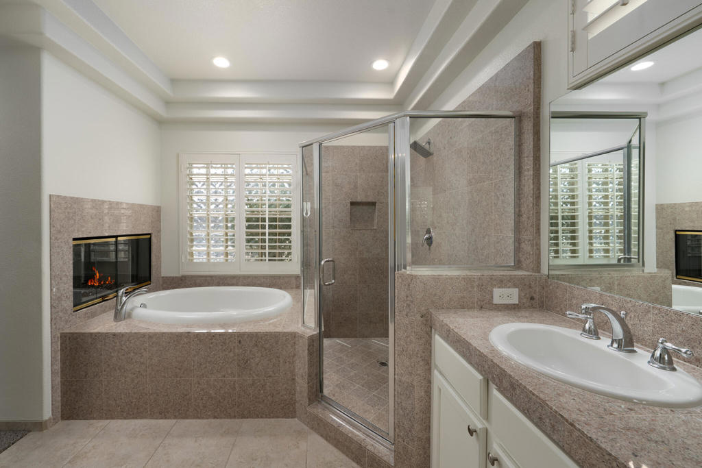 Tucked behind the gates of Key Largo in Rancho Mirage, this south-facing single-family residence captures everything buyers come to the desert for: privacy, sunlight, and effortless indoor-outdoor living. With low HOA dues and a central location near dining, golf, and resort amenities, the home offers the kind of everyday ease that defines the Rancho Mirage lifestyle.From the moment you step inside, the home feels open, calm, and welcoming. The layout flows naturally, with an updated kitchen featuring granite countertops, stainless steel appliances, white cabinetry, a walk-in pantry, and a breakfast nook, all opening to the main living and dining areas. Recessed lighting, electric blinds, ceiling fans, and a tiled fireplace add warmth and comfort without distraction, making spaces that feel just as good for quiet mornings as for entertaining.The primary suite is a true retreat, thoughtfully positioned for privacy and designed to slow the pace of the day. A dual-sided fireplace connects the bedroom and bath, while dual vanities, a soaking tub, a tiled shower, recessed lighting, and a walk-in closet create a spa-like experience at home. Two additional bedrooms offer flexibility for guests, and or office space.Outside, the lifestyle truly comes alive. The south-facing backyard is sun-filled and serene, featuring a pebble-finish pool and spa, an aluminum pergola, stamped concrete, outdoor lighting, mountain views, and desert landscaping with selective grass, ideal for long afternoons, evening gatherings, or simply enjoying the quiet desert air.Additional highlights include updated pool equipment, an alarm system, cameras, interior and exterior speakers, electric blinds, and a three-car garage with treated floors and built-in storage. IID electric helps keep utility costs manageable.This is more than a house; it's a home designed for how people actually live in Rancho Mirage. Come experience it for yourself.