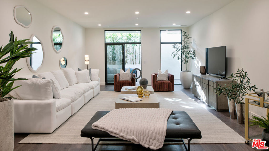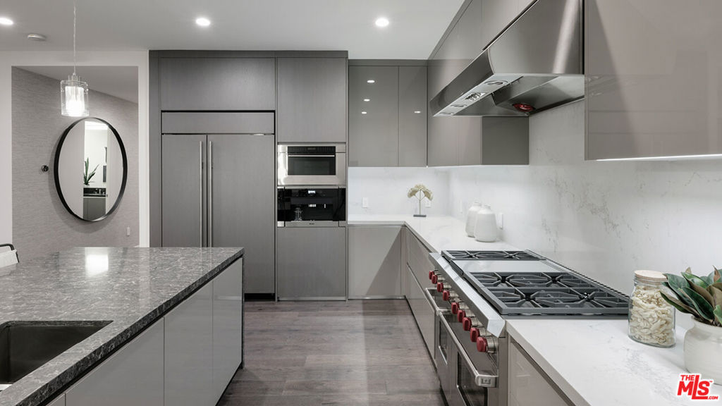 Welcome to 425 Palm in Beverly Hills. Residence 102 offers an expansive 2 bedroom, 2.5 bath floor plan spanning 2,820 interior SF and 330 exterior SF. The thoughtfully designed open-concept layout features a gourmet kitchen that flows effortlessly into the dedicated living and dining rooms, extending to an outdoor patio ideal for indoor-outdoor living. Impeccably designed interior finishes feature Wolf and Sub-Zero appliances, a Miele built-in coffee system, Caesarstone countertops in the kitchen and baths, Italian Gessi fixtures, and custom imported Linea Quattro European cabinetry. The spacious primary suite includes a walk-in closet and a well-appointed bathroom with water closet. Additional highlights include an expansive terrace for entertaining, a dedicated laundry room, and two side-by-side assigned parking spaces. 425 Palm offers an on-site fitness center with top-of-the-line equipment, an outdoor gourmet kitchen, wood decking with sunken spa, a dedicated lobby with 24-hour on-site staff, and controlled access.