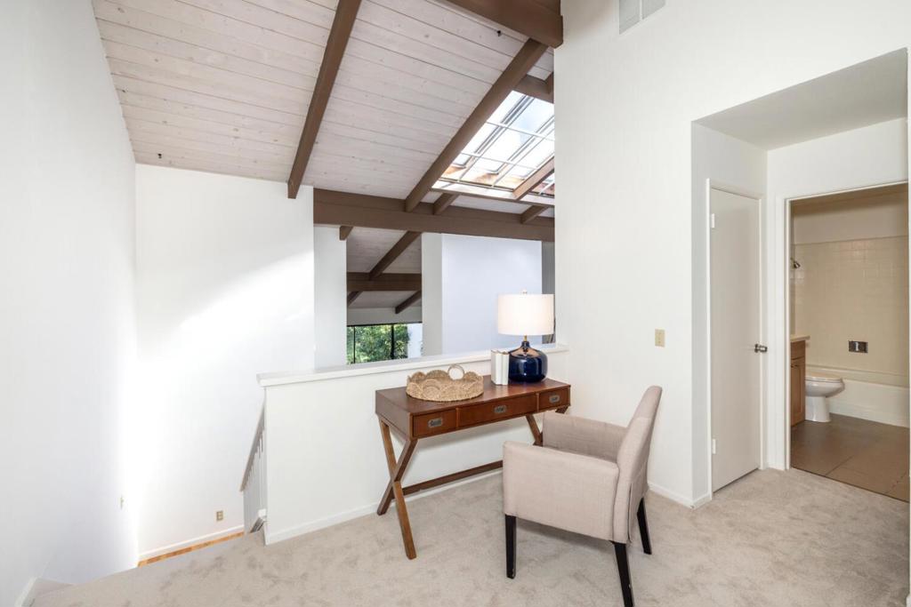 Come see and enjoy this stunning townhouse, overlooking the Sharon Heights Golf Course. Loads of natural light with soaring open beam ceilings and a large private balcony. Desirable floor plan featuring 2 spacious bedrooms and 2 full bathrooms, plus a loft style family room, which can easily be reconfigured to a 3rd bedroom.
