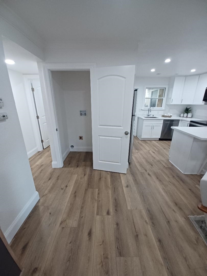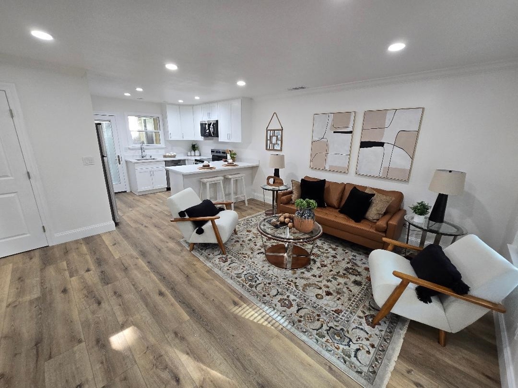 Stunning Newly Remodeled End Unit This beautifully updated 3-bed, 2-bath home offers modern comfort and style throughout. Step into a spacious, light-filled kitchen featuring gleaming white countertops, stainless steel appliances, and generous cabinetry — perfect for cooking and entertaining. Warm brown vinyl plank flooring flows seamlessly through the home, complemented by recessed lighting that creates a bright, inviting atmosphere. Both bathrooms have been thoughtfully refreshed with clean, contemporary finishes. Each bedroom includes mirror closet doors, adding both function and a sense of openness. Enjoy an expansive outdoor space ideal for relaxing, gardening, or hosting gatherings. As an end unit, this home provides added privacy and an extra sense of tranquility. A truly move-in-ready gem with every detail carefully considered.