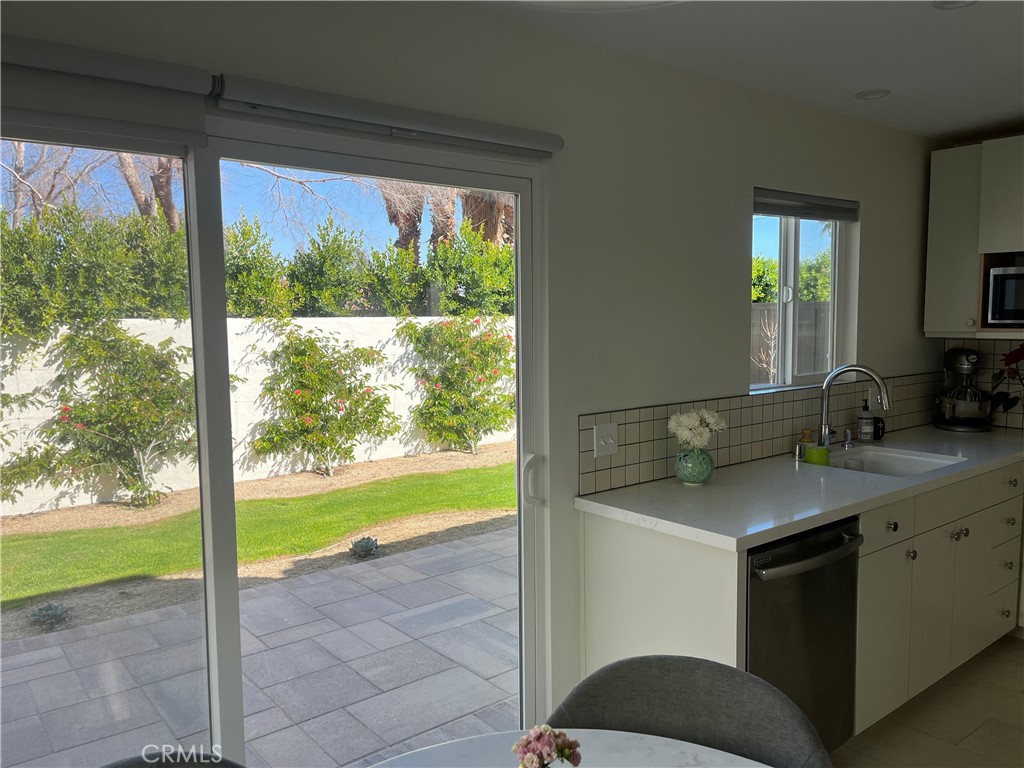 Welcome home to your Desert Retreat. Located in Prime Palm Desert area this 2 Bedroom 2 Full Bath Home in the Vinyards Community awaits. Near all the major amenities of Trader Joes and Whole Foods, Aquatic Center and Dog Park just name a few. This home has been tastefully remodeled with natural light throughout. The kitchen features new counters, cabinetry, all new stainless steel appliances and range hood. Sliding doors off the the kitchen open to the backyard patio, ideal for dining Al Fresco. The primary bath features dual sinks and a newly tiled walk-in shower. Plus, there is private in-unit laundry and a private garage, carport, and driveway for parking. Refrigerator and washer/dryer included (without warranty). One small dog will be considered with pet rent and deposit. Rate listed is for long term unfurnished. Short term lease unfurnished or furnished can be made available, at higher rate, please inquire for further details.