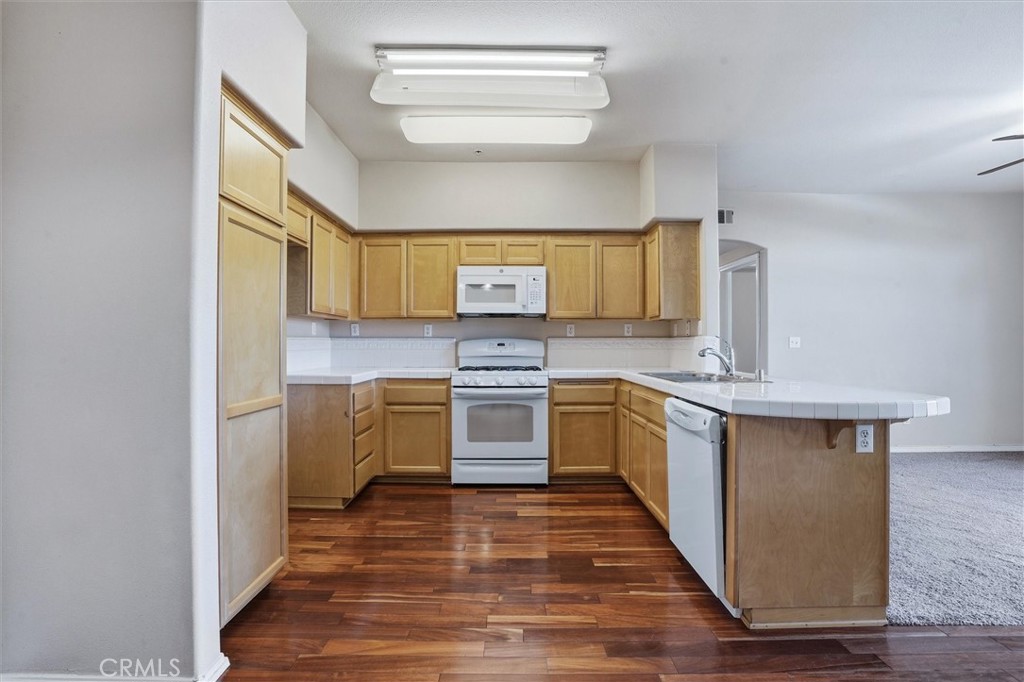 Spacious 3-bedroom, 2-bath upstairs unit featuring a private balcony and convenient stackable washer and dryer. The kitchen offers tile countertops with a breakfast bar, perfect for casual dining. Move-in ready with abundant storage throughout. Located near the community pool, residents also enjoy access to a clubhouse and resort-style amenities.