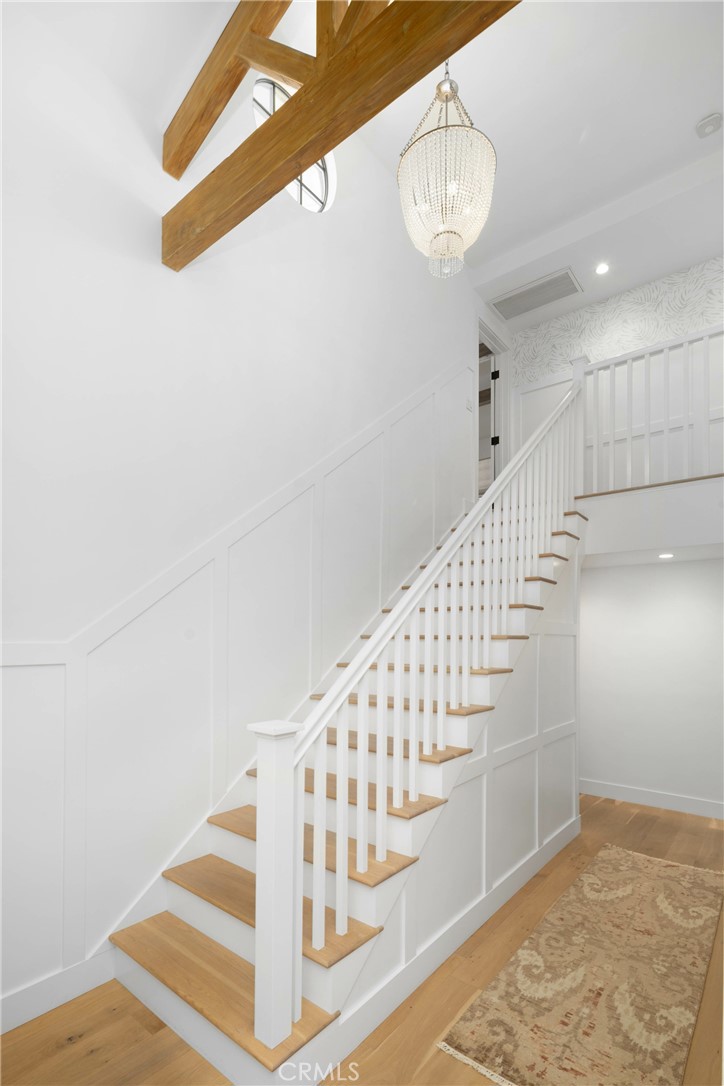 Discover effortless luxury in the heart of Sierra Madre. Restored to perfection in 2018, this immaculate residence invites you to simply move in, unpack, and enjoy. From the moment you step inside, a dramatic two-story foyer sets the tone with soaring vaulted ceilings, neutral designer tones, and wide-plank European oak hardwood floors that flow seamlessly throughout. Sunlight pours through Milgard windows dressed with custom shades, brightening the open living room and chandelier-lit dining area. The chef’s kitchen is a showpiece, boasting a full suite of KitchenAid Café stainless steel appliances, sleek cabinetry, and striking Cosentino Silestone quartz countertops. A three-seat island, illuminated by chic pendants, incorporates Energy Star alarm-activated refrigerator drawers, while a pass-through service window enhances entertaining. Expansive 5-panel aluminum and glass bi-fold lanai doors create a seamless connection to the outdoors, framing serene backyard views. Every detail has been thoughtfully designed—from the custom built-ins in the living room to the maple banquette with storage in the breakfast nook. An artisan wood-burning fireplace with a bespoke mantle provides warmth and charm, while designer baths feature wainscoting, Restoration Hardware vanities, hand-selected wallpaper, and curated lighting. Retreat to the vaulted main suite, highlighted by exposed stained wood beams, a Solatube skylight, and an oversized walk-in closet. Its spa-like ensuite offers a glass-enclosed shower and a freestanding soaking tub, perfect for unwinding in luxury. Step outside to your private oasis. A tiered backyard showcases herringbone brickwork, eco-friendly turf and Cali Bamboo composite decking. Refresh in the upgraded pool with new tile, coping, and Baja shelf, all surrounded by lush hedges for privacy. Additional highlights include updated plumbing and electrical systems, newer HVAC, Nest thermostats and smoke detectors, a Qolsys touchscreen security system with wireless motion detection, and an attached 2-car garage with an insulated Amarr steel door. This rare Sierra Madre jewel combines modern sophistication with timeless comfort—ready to welcome its next chapter. Come experience it today.