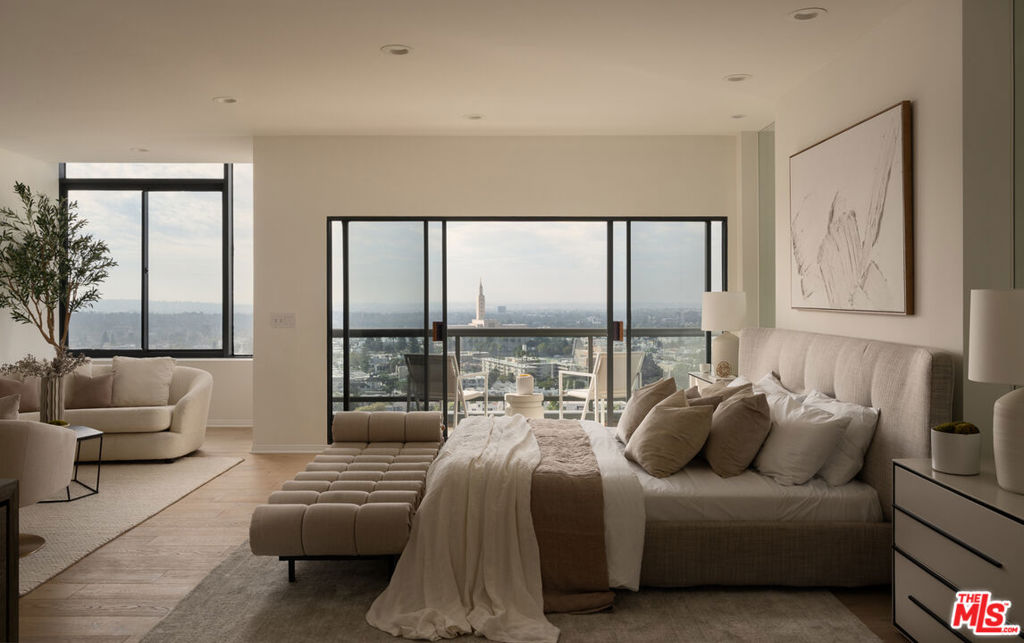 Perched atop the iconic Park Wilshire, this extraordinary penthouse presents a rare chance to acquire one of Los Angeles' most distinguished high-rise residences. Spanning more than 6,600 square feet, the home exemplifies sophisticated living with sweeping 270-degree vistas from the ocean to the hills, showcased from four expansive terraces. A refined paneled entry opens to grand living and dining rooms, where walls of glass flood the interiors with natural light. Soaring ceilings, generous wall space, and wide-plank white oak floors create a perfect setting for art, entertaining, and everyday elegance. The newly reimagined chef's kitchen is anchored by a striking Taj Mahal quartzite island and outfitted with Miele appliances. The tranquil primary suite encompasses over 1,800 square feet and features dual spa-like baths, two walk-in closets, a private kitchenette, and a lounge that opens directly to a terrace. A separate wing includes a junior suite, a guest bedroom, and an additional room currently used as a home office. The media room offers an inviting space for film and music enjoyment. Recent renovations to Park Wilshire introduce some of the Corridor's most desirable amenities, including a beautifully appointed lobby, library lounges, pool and spa, and a state-of-the-art fitness center. With breathtaking views from sunrise to sunset, this exceptional residence defines elevated, full-service Los Angeles living. Ideally situated just minutes from Beverly Hills, Hillcrest Country Club, LACC, Bel Air Country Club, Westwood Village, and beyond, this is a truly rare offering.
