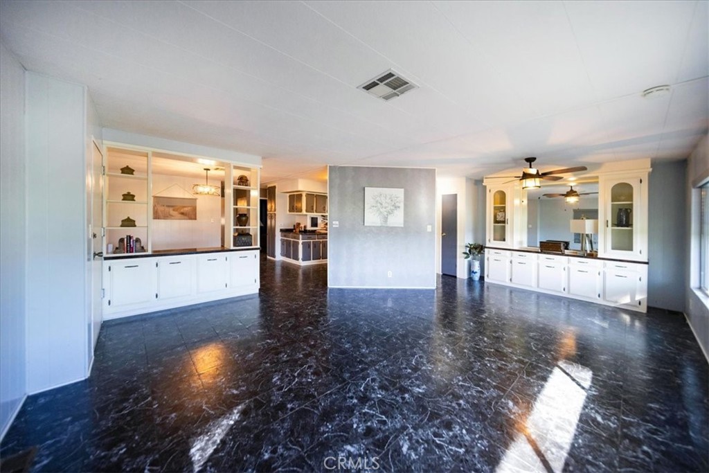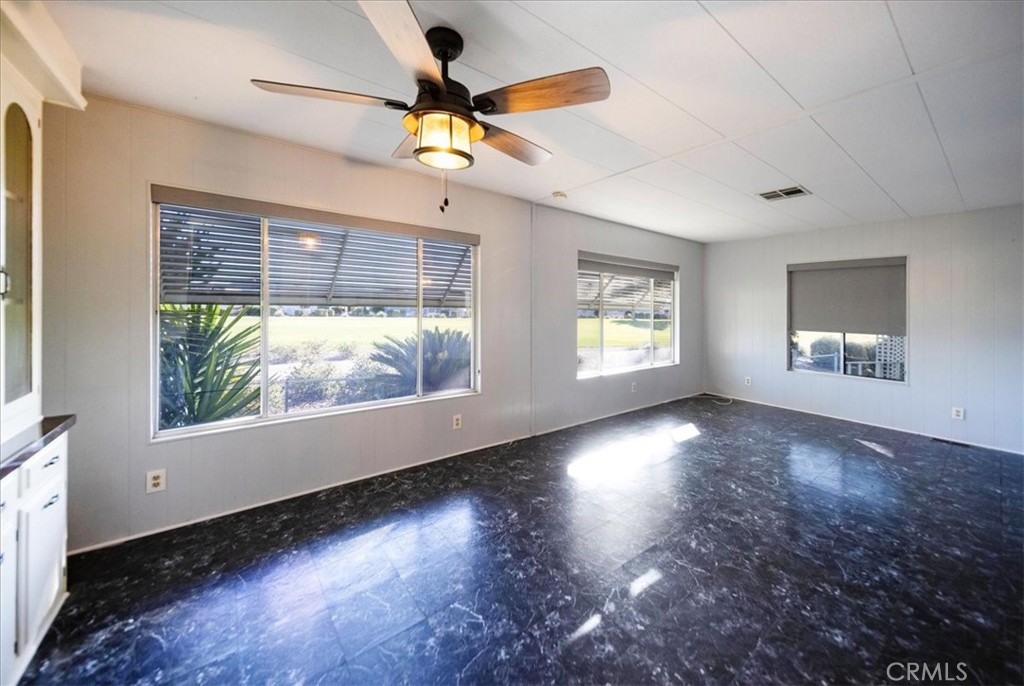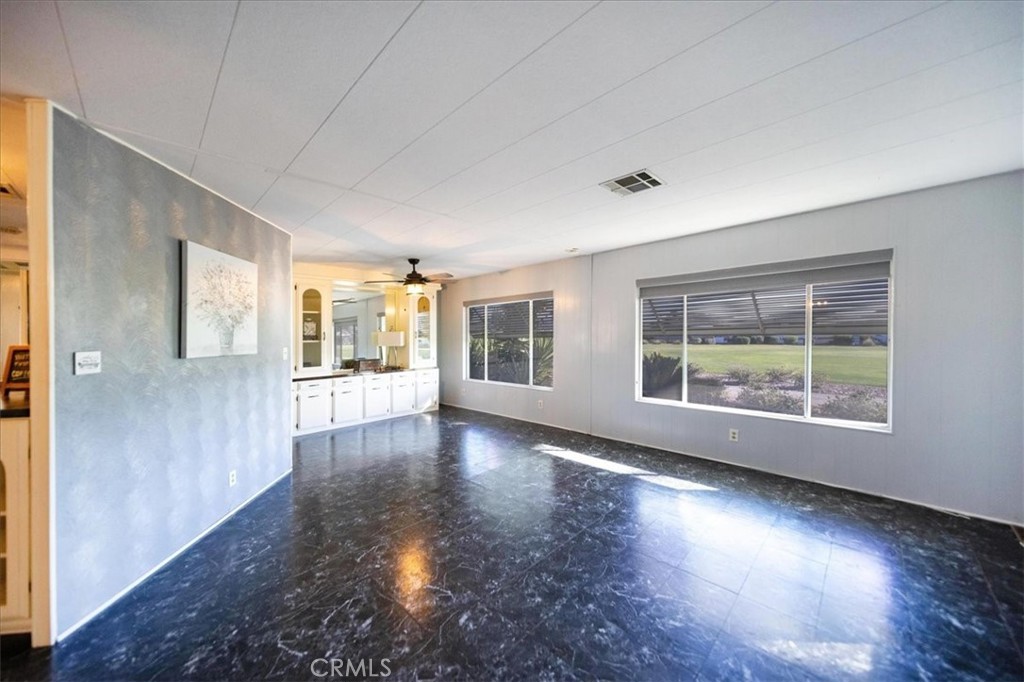 SELLER IS MOTIVATED! Seller may consider a flooring credit with the right offer! Nestled on the golf course in the sought-after 55+ resort community of The Lakes at Hemet West, this beautifully updated 2-bedroom 2-bath mobile home offers breathtaking views of the fairway and the cascading waterfalls just across the street, creating a daily backdrop that feels like a vacation that never ends. Inside, you’ll find newer flooring and fresh paint throughout, along with updated countertops and refinished kitchen cabinets. The microwave, stove, and refrigerator are all approximately five years old, along with the washer and dryer, which are also included. The spacious living room features ceiling fans and elegant French doors that open to an oversized covered porch, ideal for relaxing, people-watching, or enjoying the peaceful golf and water views. Both bathrooms have been updated, and the primary suite includes a walk-in closet. The fenced lot is perfect for pets and privacy, and the home has been thoughtfully improved with earthquake safety straps, reinforced newer skirting, a newer 40-gallon water heater, and updated PVC plumbing. This home is set within a vibrant resort community featuring five lakes, beautiful waterfalls and fountains, a golf course, an expansive dog park, state-of-the-art sports courts, and a clubhouse with a pool, card room, gym, shuffleboard, and more. Enjoy a lively social calendar with live bands and dancing, Taco Tuesdays, breakfast burritos, and community events that make every day feel like a celebration of easy, joyful living. Don't miss out on your chance to own and enjoy a small piece of Heaven. This seller is motivated and at this price, the home will not last!