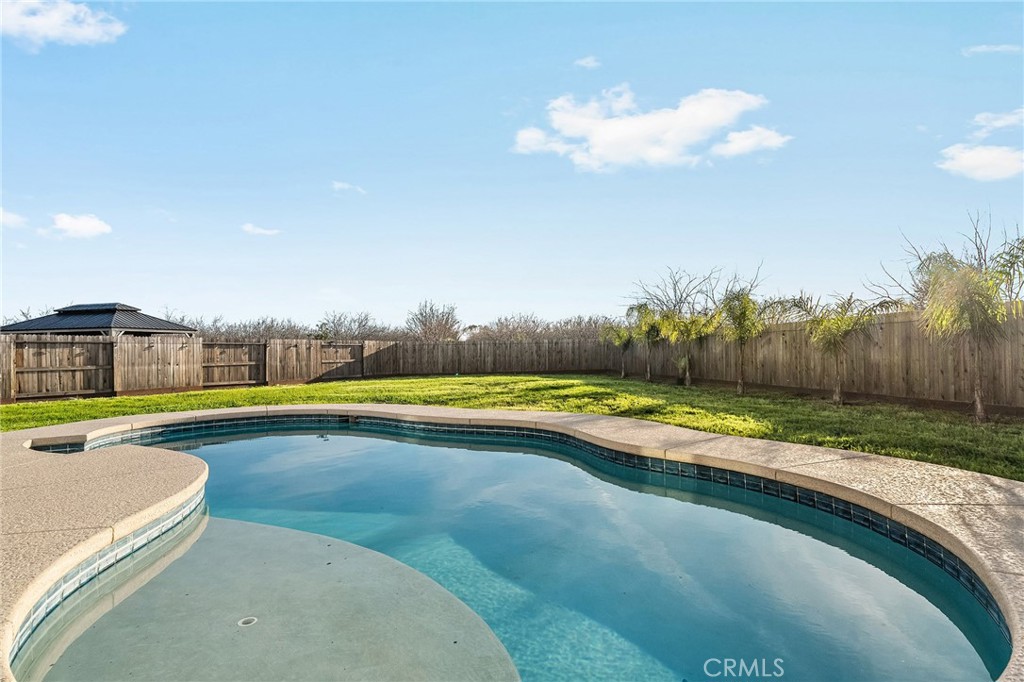 Stunning 2023 Modern Home – Turnkey Living with Owned Solar!!!! Private Pool & Spacious Backyard Oasis! Discover effortless modern luxury in this nearly-new 2023-built gem, offering 3 spacious bedrooms, 2 full baths, and an inviting open floor plan designed for today’s lifestyle. Step inside to soaring ceilings, abundant natural light, and seamless flow from the living area to the dining space and gourmet kitchen—perfect for entertaining or relaxed family evenings. The heart of the home shines with brand-new, high-end appliances, sleek countertops, and thoughtful finishes that make cooking and gathering a joy. Energy efficiency meets sustainability with fully owned solar panels, delivering low utility bills and peace of mind for years to come. Retreat to your private backyard paradise, complete with a sparkling pool that’s ideal for cooling off on warm California days, plus a generous, expansive lawn and plenty of room for play, gardening, outdoor dining, or future ADU dreams. This resort-style outdoor space feels like your own personal getaway. Bonus perks include prime walkability—just steps to a nearby park for morning walks, playground fun, or weekend picnics—putting recreation and nature right at your doorstep. Move-in ready and loaded with upgrades, this home blends contemporary style, smart energy features, and unbeatable outdoor living in one of California’s most desirable settings. Don’t miss your chance to own this exceptional property—schedule your private tour today!