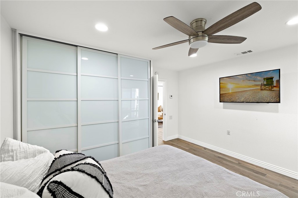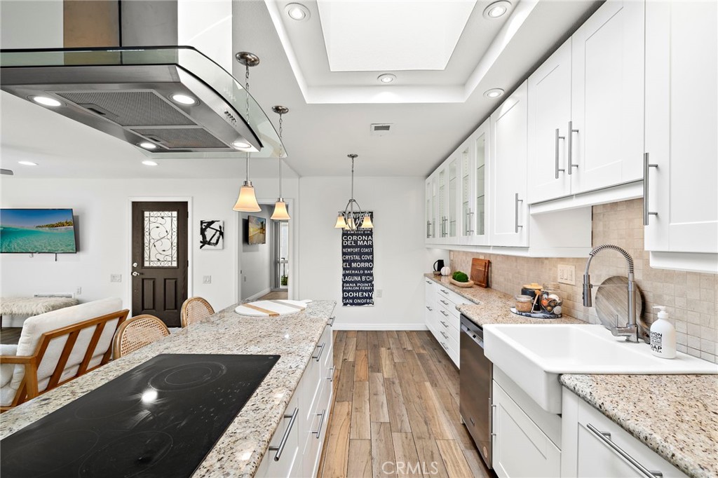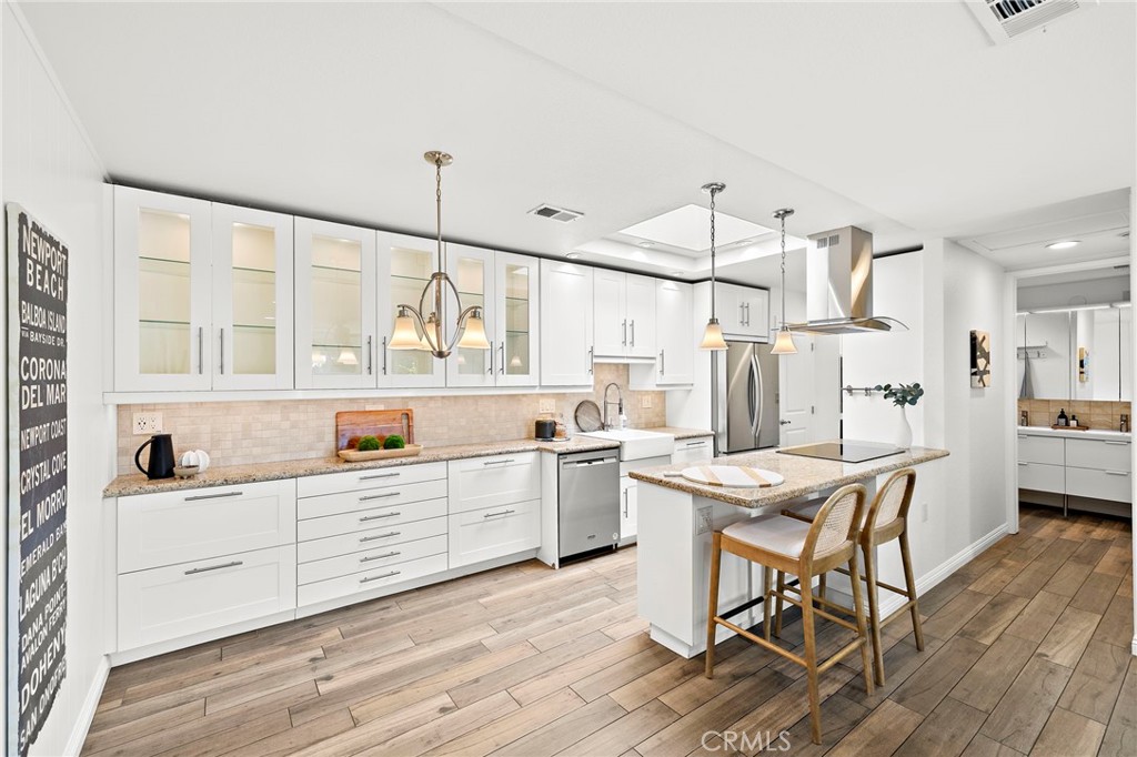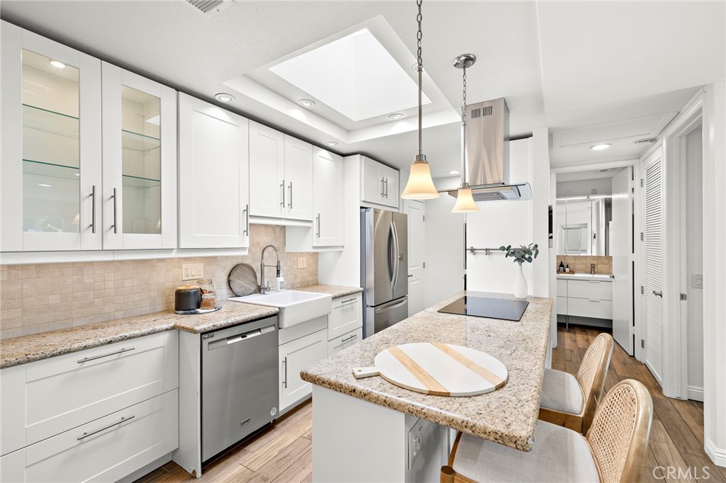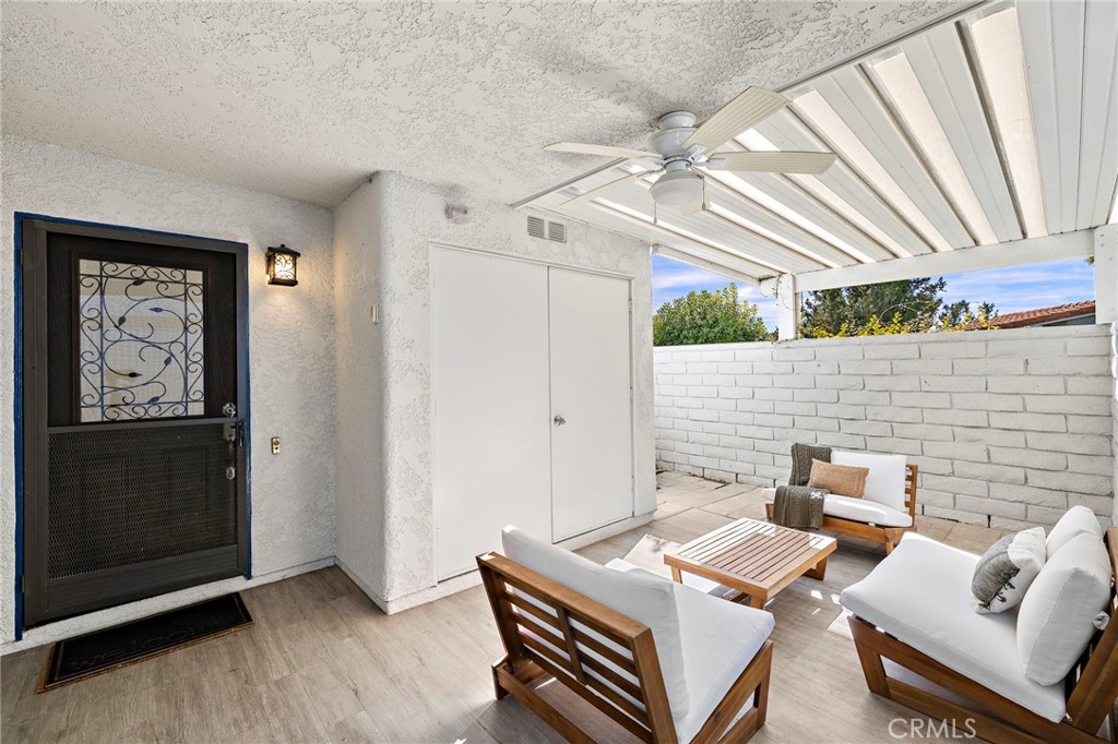 Welcome to this beautifully remodeled 2-bedroom, 1-bath condo in Laguna Woods Village, one of South Orange County’s most sought-after 55+ gated communities designed for active living. This ground-level Monterey floor-plan has NO STAIRS with the added privacy of no one above or below. A spacious private patio welcomes you as you enter the home, immediately setting the tone for relaxed California living. Inside, the kitchen and living areas have been completely reimagined with a modern open-concept design, showcasing granite countertops, a large peninsula that opens to the living area, coordinating new appliances (including the refrigerator!), and abundant storage with extra-large drawers and pull-out pantry shelving. Porcelain tile flooring with a wood plank design and recessed lighting run throughout the home, enhancing its modern, cohesive design. Dual-pane windows provide added energy efficiency and comfort, while central air conditioning and heating ensures comfort year-round. Enjoy the convenience of indoor laundry with a stackable washer and dryer that's also included! The extra-large covered private patio serves as a true extension of the living space. It's perfect for enjoying Southern California’s indoor-outdoor lifestyle. An added electrical outlet allows for easy TV installation, making this outdoor retreat ideal for watching your favorite shows or hosting guests. Laguna Woods Village offers resort-style amenities, including a 27-hole championship golf course, tennis, pickleball, bocce ball, an equestrian center, garden plots, RV parking, fitness centers, swimming pools, clubhouses, workshops, a library, a performing arts theater, and endless social clubs and activities. The HOA covers water, trash, basic cable, landscaping, and exterior maintenance, making life here as low-maintenance as it is enjoyable. And yes, you’re just 10 minutes from the world-class beaches, art galleries, and restaurants of Laguna Beach. Don’t miss the opportunity to call this warm and inviting home yours!