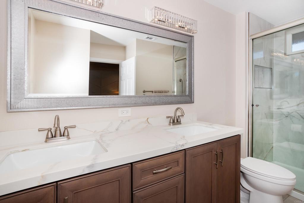 Beautifully remodeled 2-bedroom, 2-bath home featuring an open, spacious, light-filled floorplan with exceptional views and privacy. Luxury vinyl plank flooring flows throughout, complemented by neutral paint and vaulted ceilings with a stunning living room beam. The inviting living space showcases a tiled fireplace and custom entertainment center, creating a warm and stylish focal point. The chef’s kitchen is both elegant and functional, offering stainless steel appliances, custom cabinetry with under-cabinet lighting, a marble backsplash, quartz countertops, and a pantry for added storage. The spacious primary suite includes built-in closet storage and a spa-inspired bathroom with dual vanities and a large walk-in shower. The secondary bathroom has been recently remodeled with custom shower tile finishes. Additional highlights include newer windows with Hunter Douglas remote-controlled shades, abundant closet storage in both bedrooms, new garage storage cabinets, and a secure locked storage unit adjacent to the garage. Enjoy seamless indoor-outdoor living with a full-length backyard patio, new patio cover, and private panoramic views. Situated on an expansive cul-de-sac lot, the home offers exceptional privacy and a premium location. Located within the highly desirable Casta del Sol community, residents enjoy resort-style amenities including multiple pools, a fitness center, recreation and billiard rooms, library, craft rooms, BBQ areas, fire pits, a wide variety of clubs and activities, and exclusive access to Lake Mission Viejo.