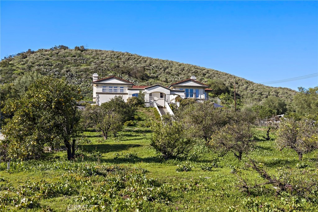 Situated in a secluded rural enclave of the unincorporated Orange Park Acres community, this exceptional one-acre estate at 11031 Meads Ave combines privacy, panoramic views, and flexible living spaces. Perched above mature groves of orange, apple, olive, and fig trees, this 6-bed, 5-bath, ~5,168 sq ft residence is accessed via a long private driveway and gated entry. Sunrise views of the hills and mountains are enjoyed from the family room, balconies, kitchen, and primary suite. The kitchen is beautifully updated with Carrara marble countertops, custom cabinetry, and high-end Viking appliances including a built-in fridge. The lower level includes a self-contained in-law suite with its own kitchen, living, and dining areas, plus separate access — ideal for multi-generational living or potential rental. Outdoors, a Fire Magic Echelon Diamond built-in barbecue, a large deck, and expansive views create an entertainer’s paradise. Upgrades include a Class A fire-rated steel roof with transferable warranty, a fully paid ground-mounted solar system, a 3-car garage with insulated doors , and high performance Andersen doors and windows throughout.