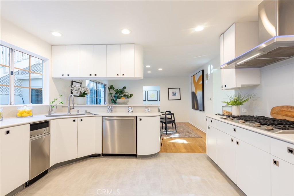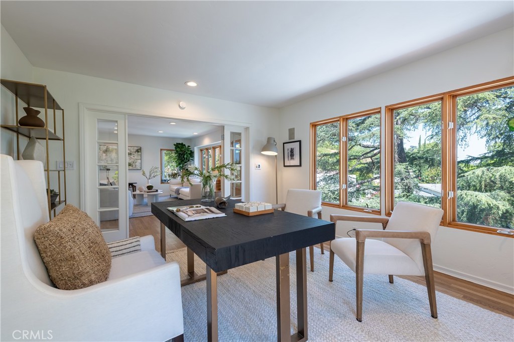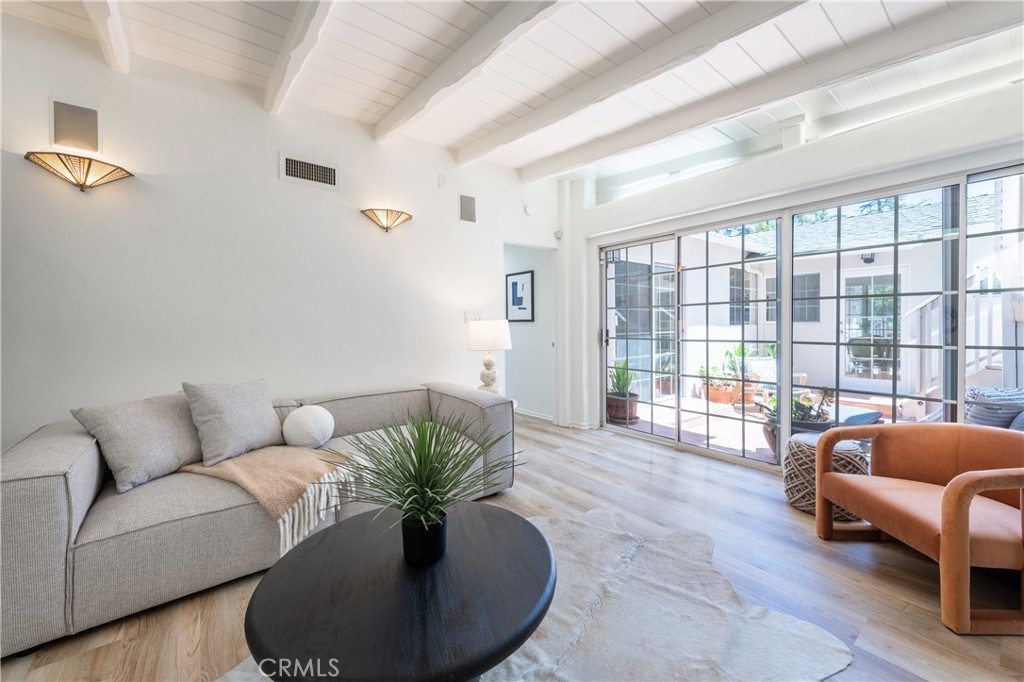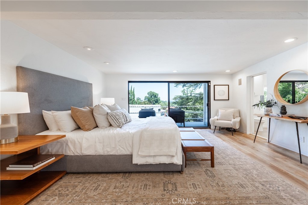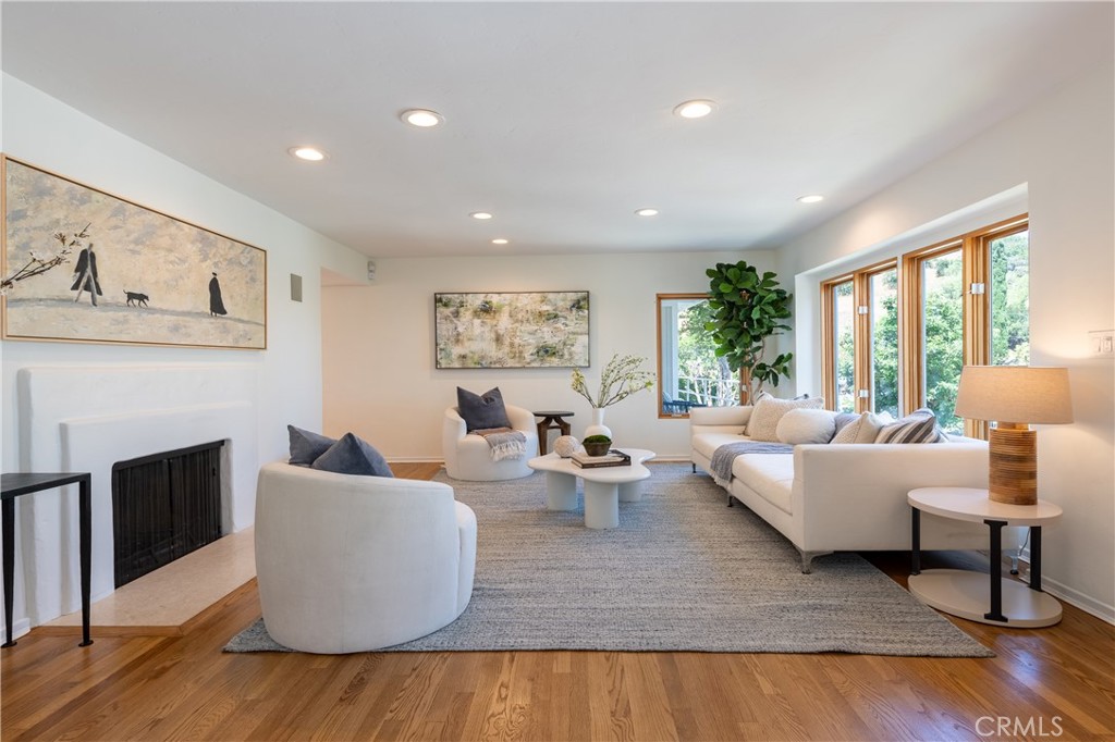 Set on a quiet, sought-after street south of the Boulevard in Sherman Oaks, this elevated hillside residence offers exceptional privacy, treetop views, and a serene retreat-like setting. Designed for entertaining, the property features multiple outdoor spaces, including patios, a sports court, a gazebo, and an expansive approximately 900-square-foot deck with pool, spa, lounge areas, and sweeping mountain and valley views. The home flows seamlessly indoors to multiple inviting living spaces, including a family room with exposed wood beams and a fireplace, a living room with another fireplace ideal for intimate gatherings, and enjoying the tree-top views. The updated kitchen features porcelain tile flooring, refreshed countertops, and premium stainless-steel appliances by Wolf, Dacor, and Bosch, with a breakfast nook and bar seating opening to outdoor dining terraces. The primary suite offers a private sanctuary with a sitting area, balcony, and renovated spa-style bath. Two additional bedrooms provide flexibility, including one with patio access and one currently used as an office. Located within the Sherman Oaks Charter Elementary School District and near scenic hiking trails, this home delivers a peaceful hillside escape with convenient access to the Westside and Ventura Boulevard.