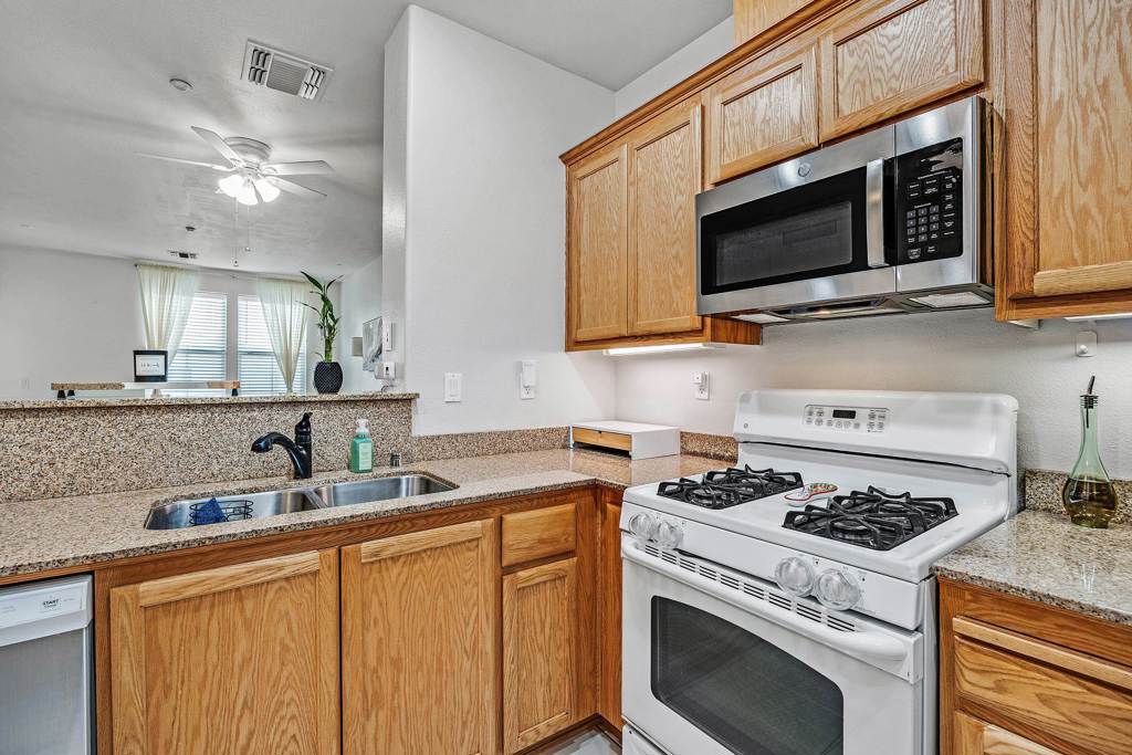 Welcome to the Terraces at Dublin Ranch! This desirable 3rd-floor condo offers the perfect blend of modern comfort and convenience in one of Dublin’s most sought-after neighborhoods. Step inside to tile flooring that flows through the entry and kitchen, complemented by plush carpet in the living room and bedroom. The open kitchen features granite slab countertops and overlooks the spacious living/dining area ideal for everyday living or entertaining guests. The oversized bathroom offers a luxurious soaking tub, a separate stall shower, dual sinks, and generous counter space. Additional highlights include in-unit laundry, a private balcony, and a dedicated underground parking space with ample guest parking available. Enjoy resort style living with community amenities including a sparkling pool, clubhouse, and fitness center. The location can’t be beat, just minutes from top-rated schools, BART, shopping, dining, parks, medical facilities, and easy access to the 580 freeway. Perfect for commuters and those seeking a low maintenance lifestyle in a vibrant community.