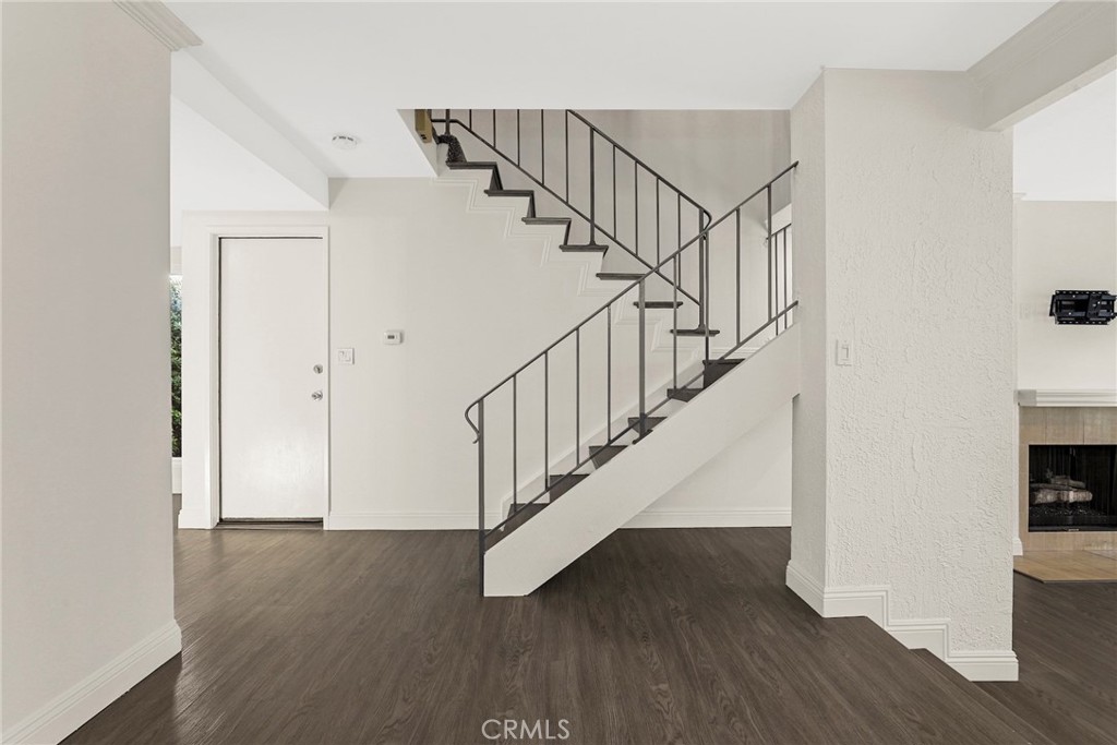 Experience resort-style luxury in "The Terraces," a prestigious guard-gated community in Rolling Hills Estates. This elegantly updated end-unit townhome sits on a quiet cul-de-sac, offering the perfect blend of privacy and sophistication. The light-filled interior features freshly painted walls, new carpeting, and wood laminate flooring. A spacious living room with a cozy fireplace and full-length French doors opens to a private wraparound balcony. The gourmet kitchen boasts granite countertops, double ovens, and a sun-drenched breakfast nook leading to a charming front patio. Upstairs, the primary retreat features vaulted ceilings, two walk-in closets, and a remodeled spa-like en-suite with a soaking tub and dual vanity. Two additional guest bedrooms share a private balcony. Unique to this home is an oversized 2-car garage plus a 2-car driveway. Enjoy 5 pools, tennis courts, and a clubhouse. Walking distance to Ridgecrest Intermediate, parks, and shopping. Truly a rare find!