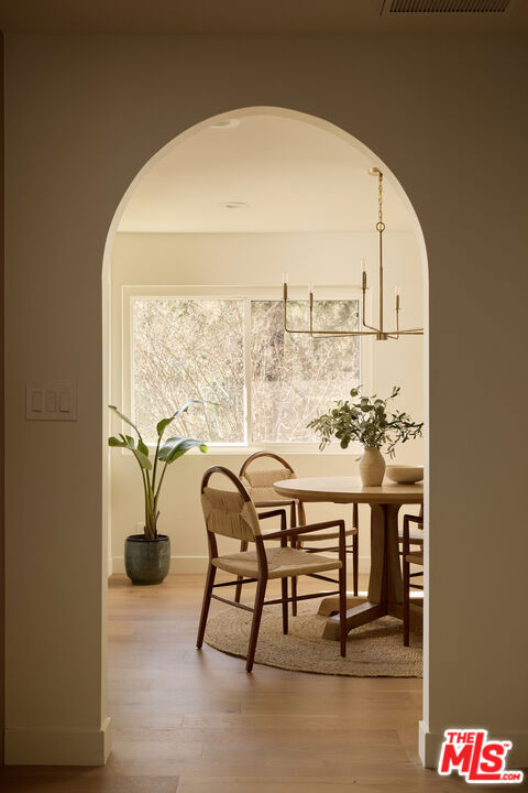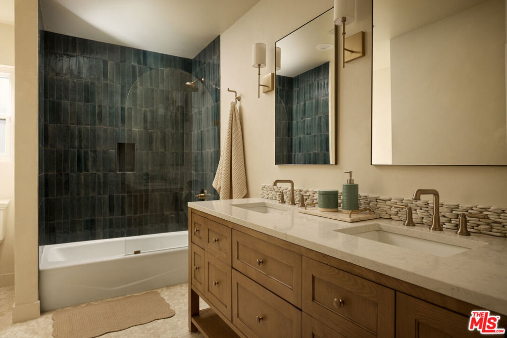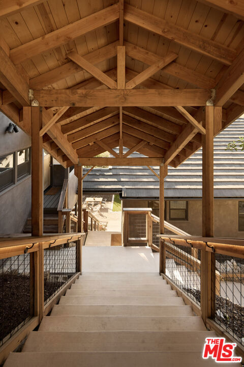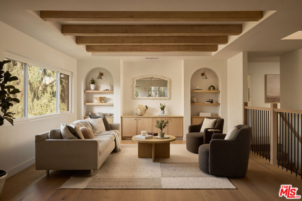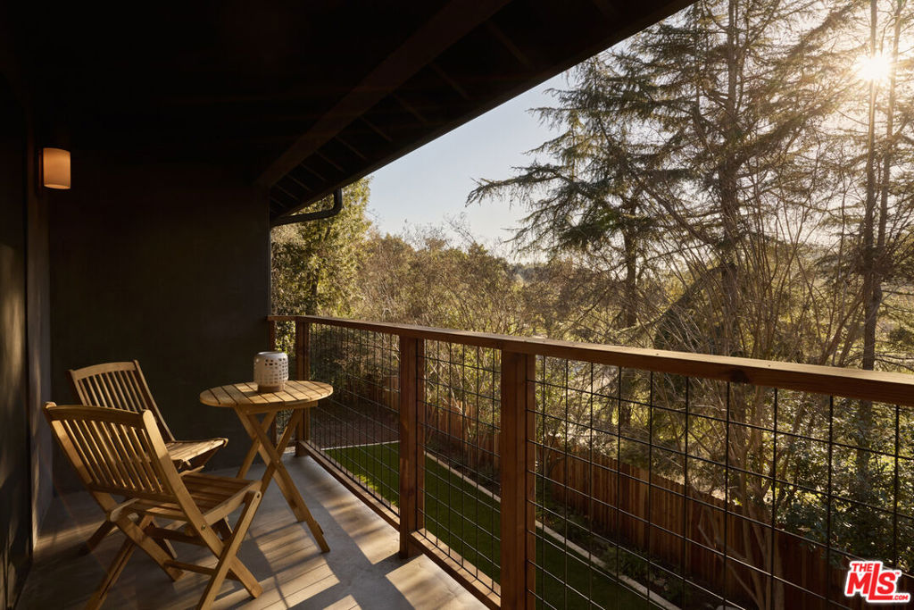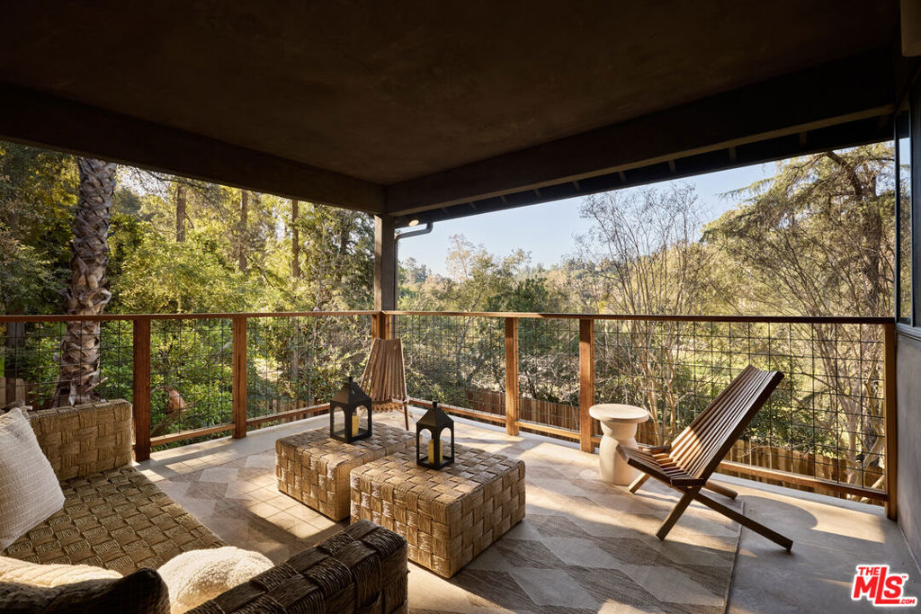 A fully reimagined, multi-level hillside home by Nicole Douglas Designs, defined by craftsmanship, privacy, and its connection to nature. A processional, pavilion-style entry leads through a covered timber passage framed by hand-crafted joinery, descending steps, and filtered light, all signaling a transition into a tranquil retreat. Inside the main house, curved arched doorways and continuous Mullican European White Oak flooring establish a seamless flow between spaces. The kitchen serves as a central gathering point, where materiality and function are thoughtfully designed. A Taj Mahal quartzite island is the focal point, complemented by Wolf and Sub-Zero appliances, custom White Oak Slim Shaker cabinetry, hand-made white oak spice shelves within a carved arched stove hood, integrated vertical wine storage designed for temperature stability, and large windows that bring in abundant natural light. A walk-in pantry is discreetly positioned off the kitchen, providing generous storage and prep capacity. The kitchen opens into the dining area and main living room, where a flame-lit natural gas fireplace finished in Venetian plaster is paired with a solid wood mantel. The primary bedroom is set apart with its own private deck overlooking the grounds. The en-suite bathroom is finished in stone and spa-like tile featuring dual vanities and a glass-enclosed walk-in shower. The lower level includes 3 additional bedrooms, an office, and a flexible space suitable for a media or family room. A lower-level deck extends the living area outward, creating an ideal setting for a wellness or workout space surrounded by nature. A separate guesthouse includes its own kitchenette, living and dining areas, private balcony, and ensuite bedroom, offering flexibility for guests, creative use, or income opportunities. The backyard is designed as a true extension of the home with terraced pathways, multiple seating areas, mature trees, and a grassy lawn area optimal for entertaining. A rare amenity further distinguishes the property: direct private access to Brookside Park, offering additional walking paths, tennis courts, and recreational areas just beyond the property line. Located in one of Pasadena's most desirable residential pockets, 521 Fremont Drive is moments from the Rose Bowl, Old Town Pasadena, and the best of the city's culture and dining.