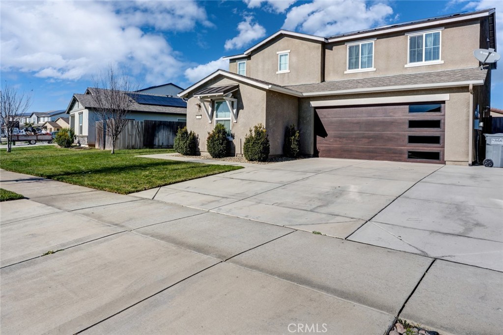 Fall in love with this stunning North Merced home with premium upgrades, located near Merced College, UC Merced, local restaurants, and shopping centers! Premium upgrades such as custom coated iron gates, an expanded driveway and a double insulated garage door with privacy windows. Boasting over 2,500 sq ft of thoughtfully designed living space, this spacious home offers 5 bedrooms and 3.5 bathrooms. Upstairs features four generously sized bedrooms, two full bathrooms, and a large bonus room/loft. Downstairs, discover a private in-law suite complete with its own bedroom, bathroom, kitchenette, and separate entrance, providing flexibility for guests or extended family. You’ll also find a convenient half bathroom for guests on the main level. Step inside and be welcomed by stylish neutral tones and modern finishes. The gourmet kitchen is a chef’s dream with elegant white cabinetry, sleek black hardware, stainless steel appliances, and a spacious island that’s perfect for gatherings. Step outside to your backyard oasis, designed for year-round enjoyment! Enjoy the heated pool, perfect for swimming even beyond the summer months. The covered patio is ideal for entertaining, complete with built-in lighting, a ceiling fan, and an outdoor TV to host unforgettable get-togethers. Additional highlights include owned solar panels. Beautifully maintained and move-in ready, this home is truly a rare find in North Merced. Don’t miss your chance to make it yours!
